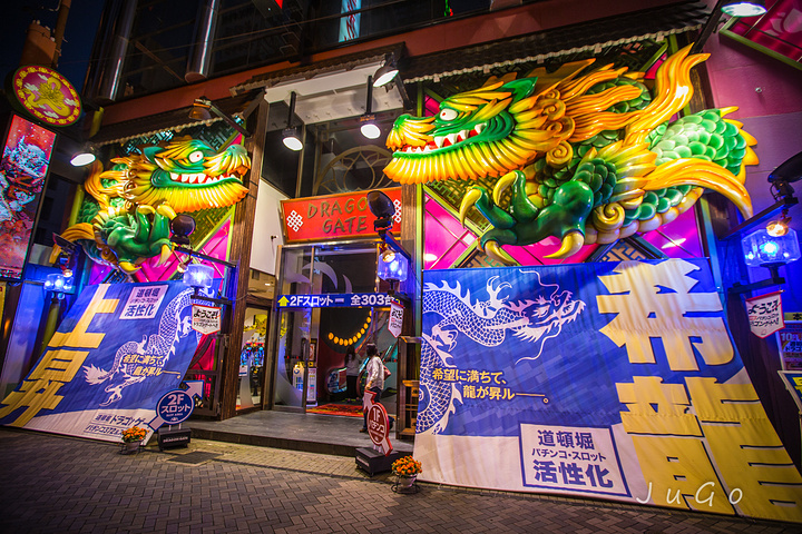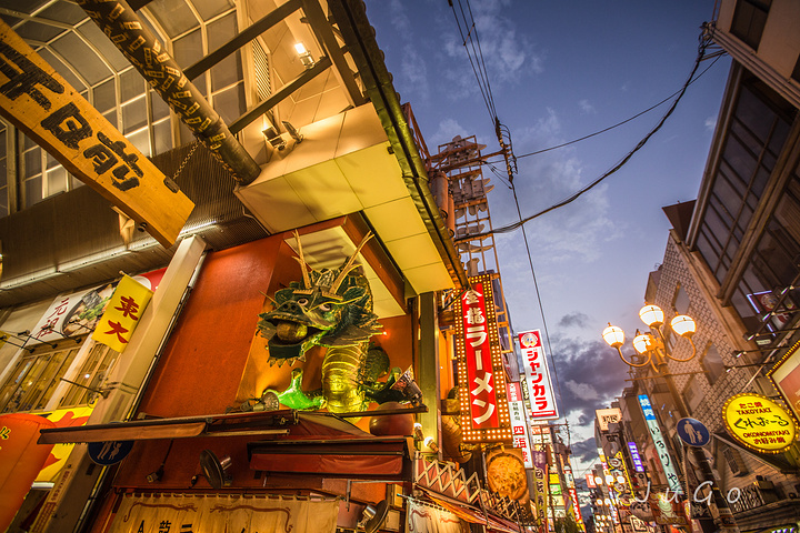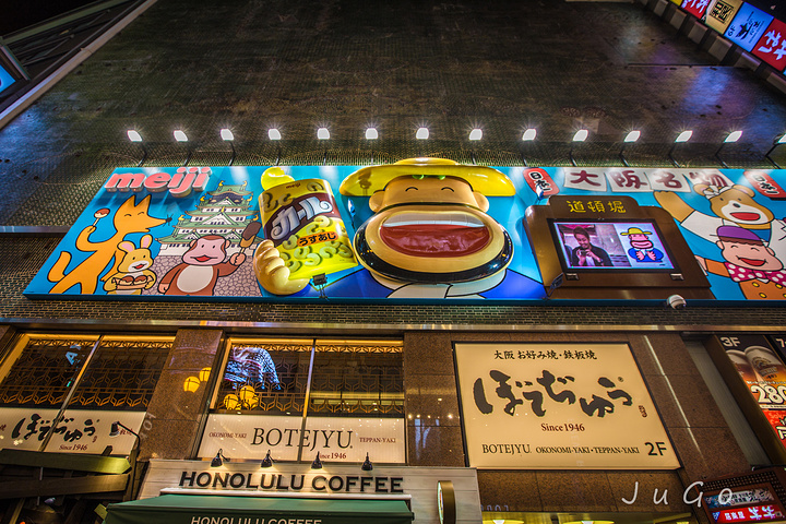 道顿堀的广告牌,大大小小,却都以一种极夸张搞怪的方式悬在半空中。走着走着,抬头猛见,常常给人一种从天而降的幽默感……