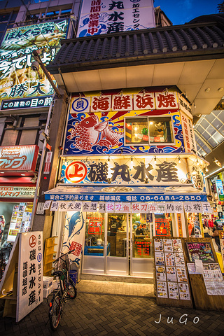 说到秋天就会想到秋刀鱼,这家写着水产的店是吃秋刀鱼的。