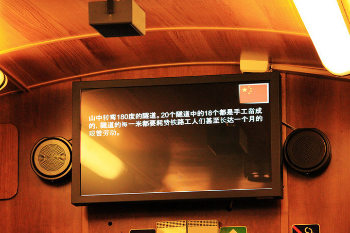 高山火车上还有中文讲解字幕,讲述这段火车的建造历史