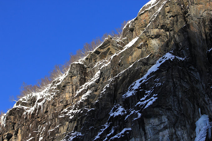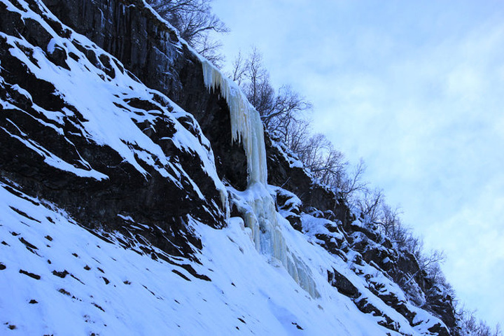 途中停留的一处瀑布,停留5-10分钟,可以下来近距离观赏。 冬天的瀑布都变成冰川了