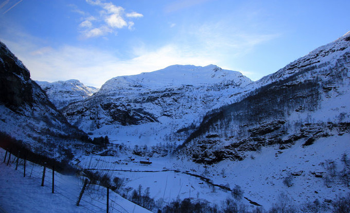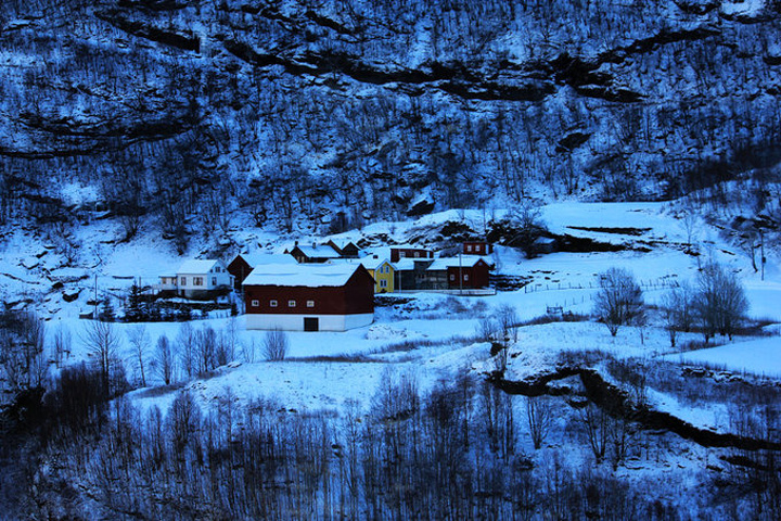 在挪威语中,“FLAM”的意思是“崇山峻岭中的一块平地”,正如其名,周围雪山环绕。