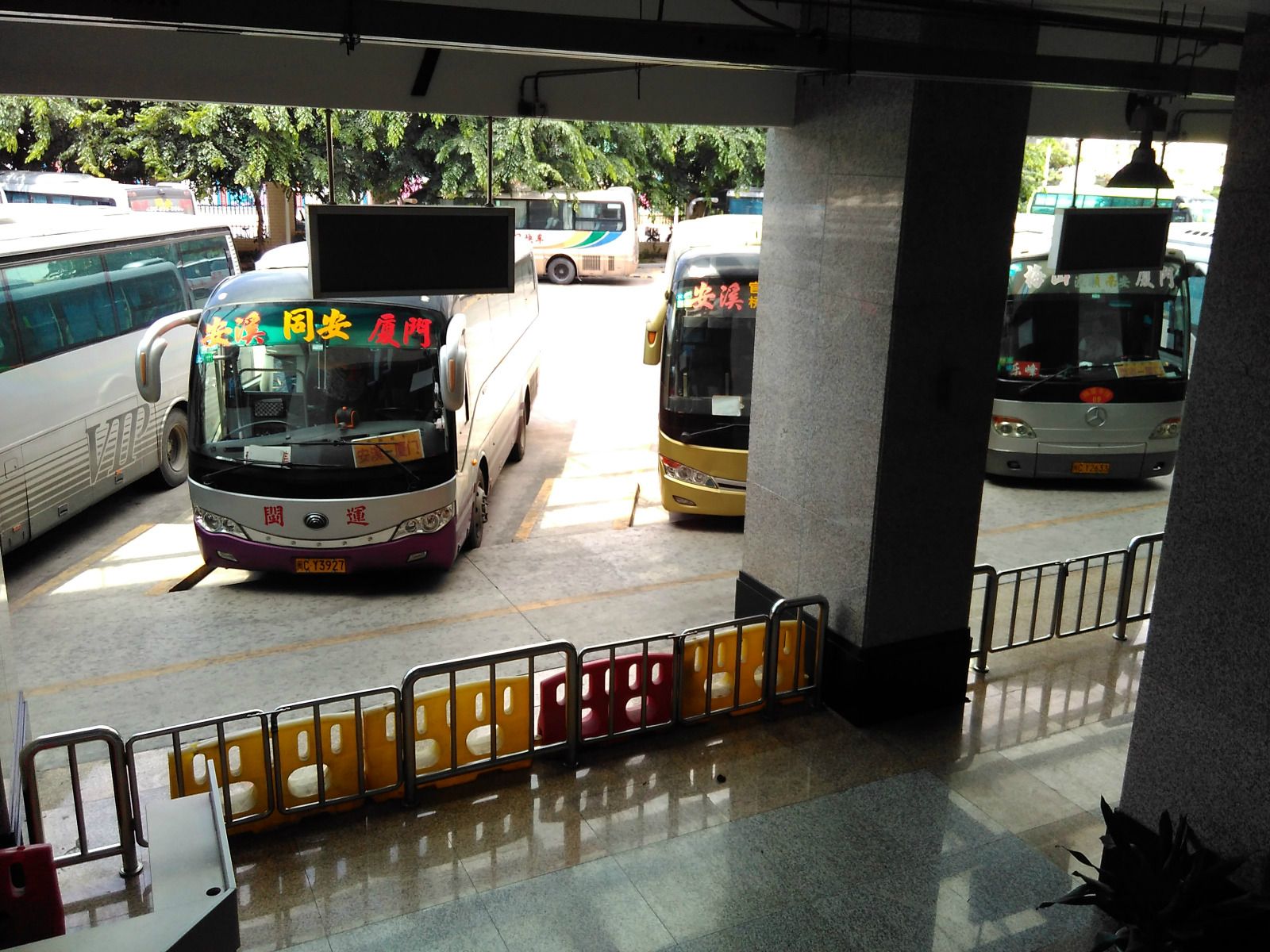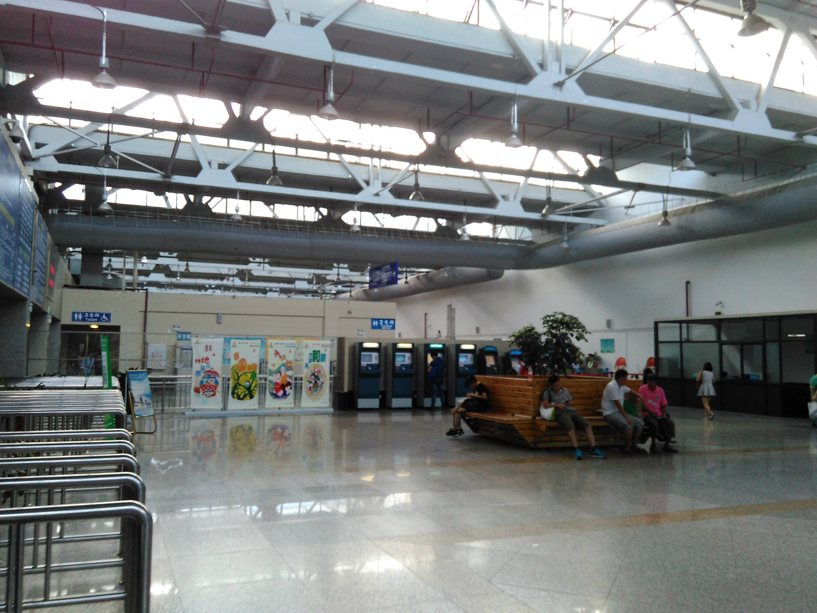 另一部分为车站:目前车站在购物广场向内走80m, 只要分为2层, 2F为购票处跟候车处。,1F为乘车处。现在购票有2种方式,一种是在现场买票, 但是只能支持现金购票, 人也比较多, 一般是建议买随到随走的省内班车,另一种是可以通过网路购票,这样的话, 可以直接在自助购票机直接取票,相当的方便, 一般建议买出发到省外的票。
