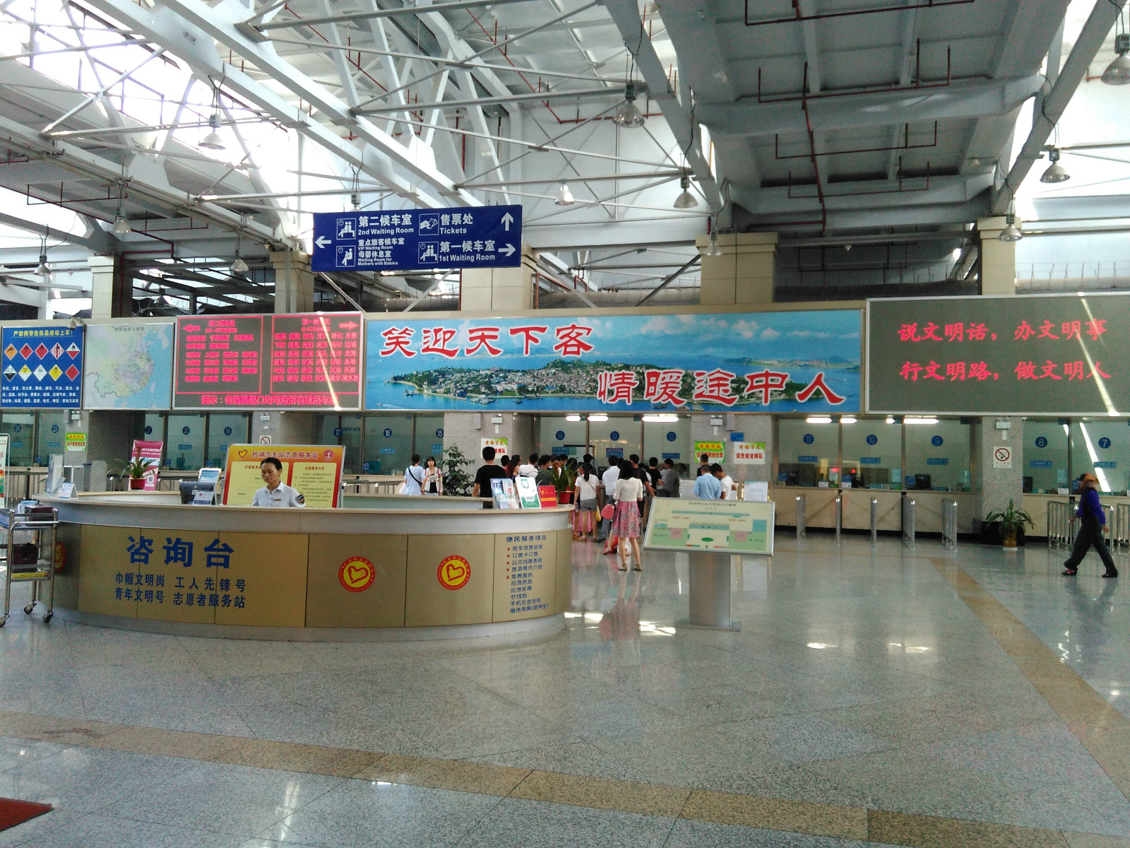 目前车站主要有服务发往全国各地的班车, 但是最主要还是以省内的班车为主。省内的班车基本上帮次很多, 差不多10-15分钟有一班车, 基本上如果不是高峰时期, 可以随到随走。