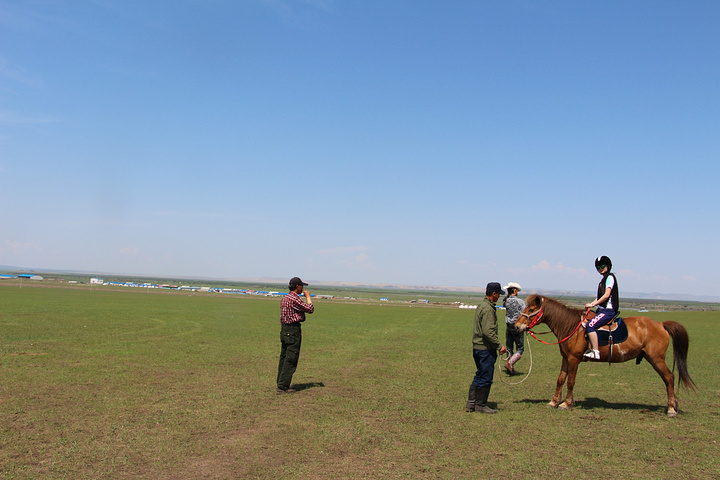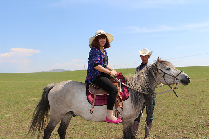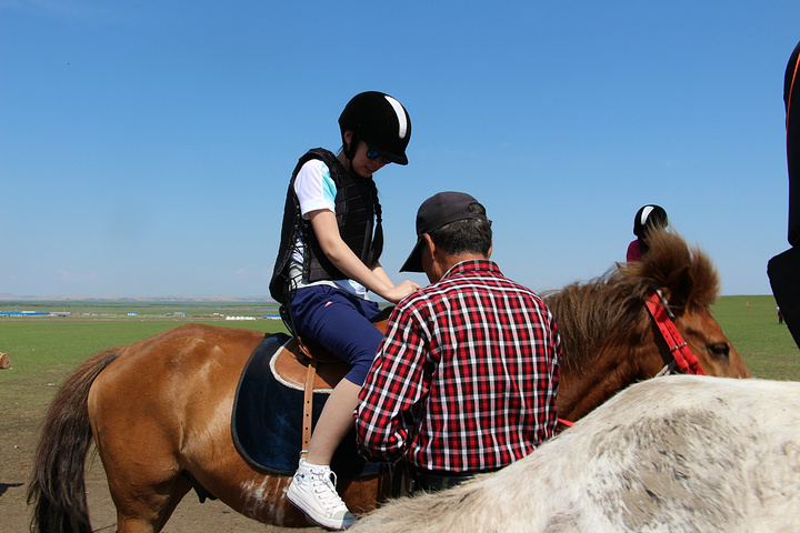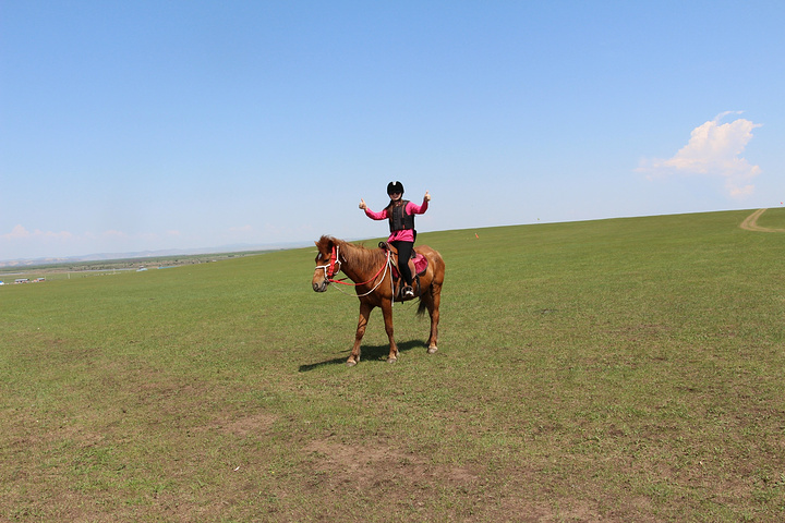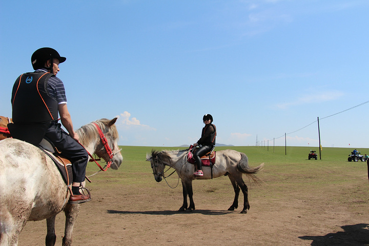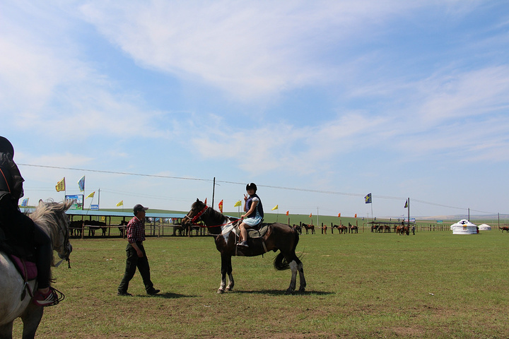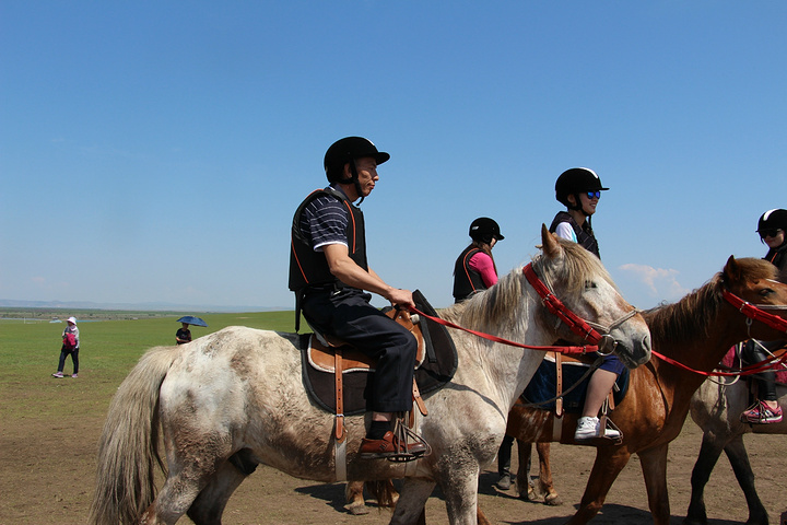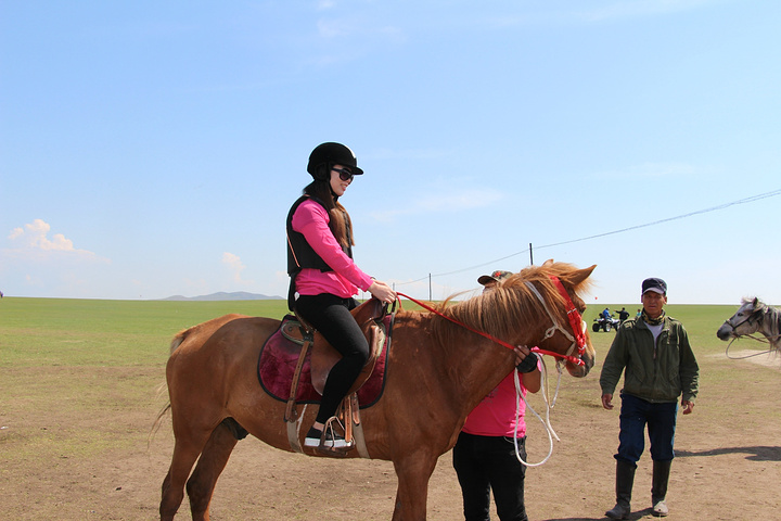 黑山头玩的最多的应该就算骑马了,相对其他地方便宜一些,100RMB/人,说的是半个小时遛一圈,其实十来分钟就完了,很不爽啊,还想再骑。马尼和我都犯了一个致命错误,她穿的裙子我穿的中裤,去之前我还笑话她,其实没比她好多少,最后都一样磨破了腿。 小风爸可能因为自小生活在南方,所以看见马异常兴奋,不停地“驾驾驾”,偏偏我的马是个傻大个,一听见就不停往前窜,几度超越教练,完全策马奔腾的感觉啊。。。