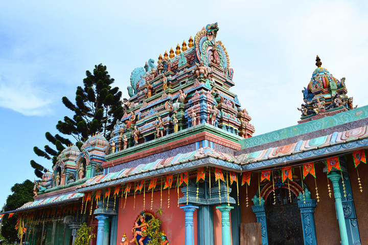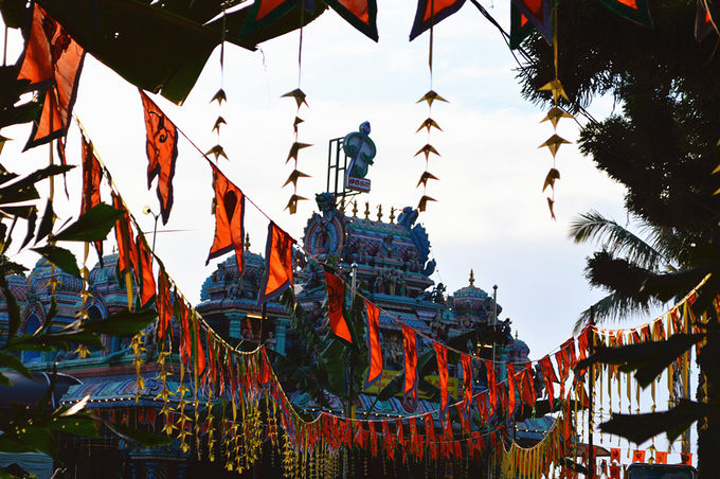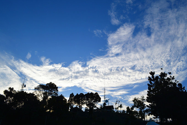 山上有个印度寺庙,到日落的时候里面会举行仪式