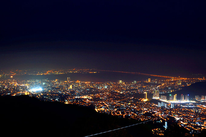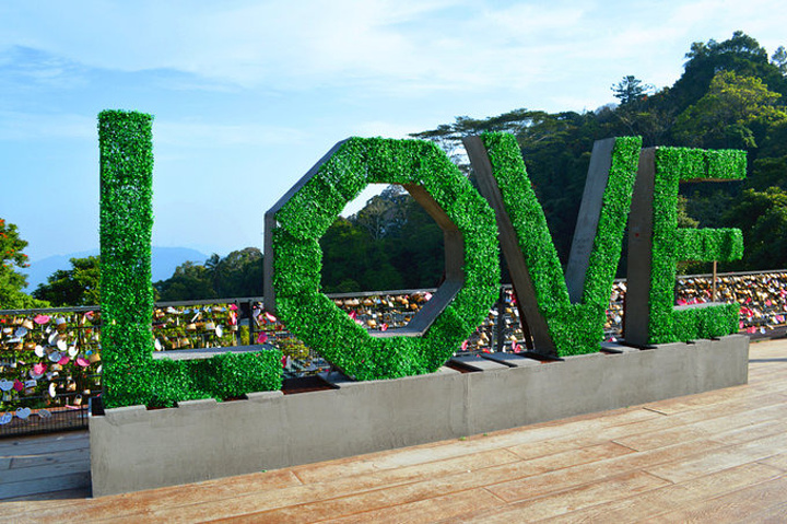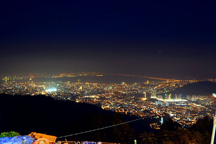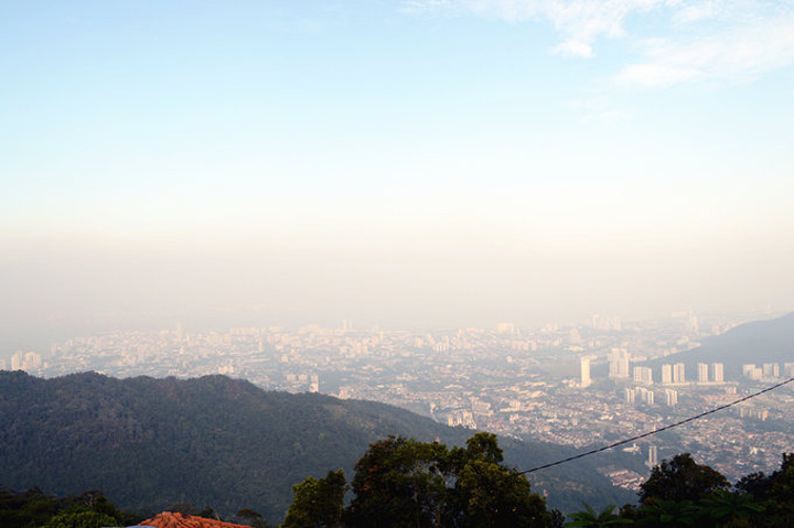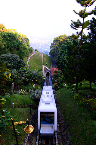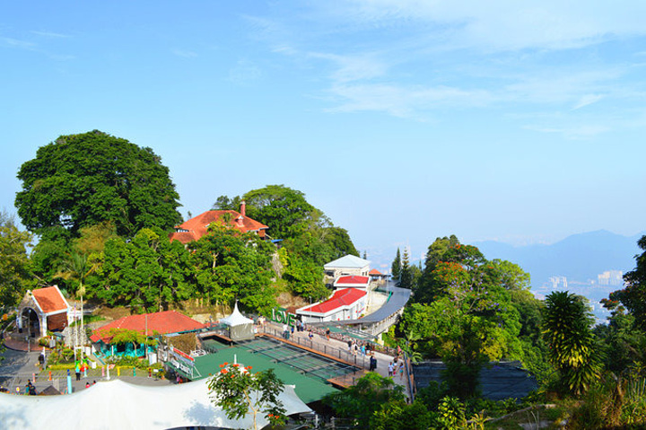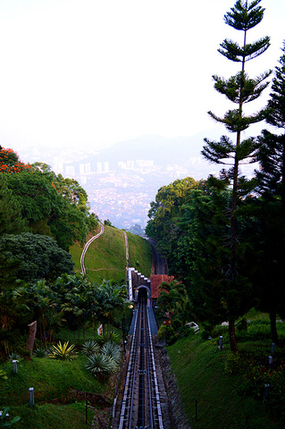 缆车经过更新后,外观跟地铁差不多,速度也很快,几分钟就到山顶了。出了缆车站往右,沿着山路走到底,就是俯瞰槟城全貌的地方了~可惜能见度不高,雾蒙蒙的。