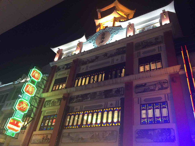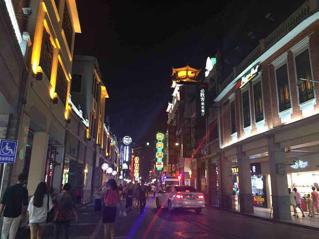很多人来广州都会去上下九和北京路这两个步行街。现在来介绍下上下九步行街商业圈啦。来这里交通很方便,坐地铁1号线到长寿路站,出地铁口之后走几分钟就是了,我一般都是在恒宝广场那个出口出去,一直走就是了。如果坐公车的话坐到恒宝广场总站,上九路,什么的都可以。有好几个公交站在附近。不过建议坐地铁咯,因为这边人比较多,路面交通相对有点慢。来到广州就当然要吃吃吃啦。相信很多攻略都有提到陈添记,顺记冰室,宝华面店,仁信甜品,银记肠粉之类,推荐吃双皮奶和云吞面,很好吃!这些在上下九这边的宝华路。都可以一一品尝到。不过有些店面是藏在巷子里的,要认真找找~吃其他的,这里也有必胜客之类的,这边也有挺多出名的老字号,像莲香楼陶陶居广州酒家之类的,可以喝茶,也可以买特产手信等回去。购物的话,相对比较大众化,都是匡威,安踏,李宁,361,以纯之类的。在这里真的是可以吃喝玩乐一次过满足你所有愿望哈哈,附近还有荔枝湾,沙面,西关大屋等景点。不过要注意下就是,在步行街里偶尔会有人拿着些小礼物什么的招揽你,所谓送你其实你不要理他就好,要是你一搭理了很容易被拉去消费啊。。态度要强硬点不要鸟他。这点是我觉得不怎么好的。我觉得可以先白天玩了附近的景点,晚上再去步行街也不错,没白天那么热,而且晚上灯开了更漂亮。