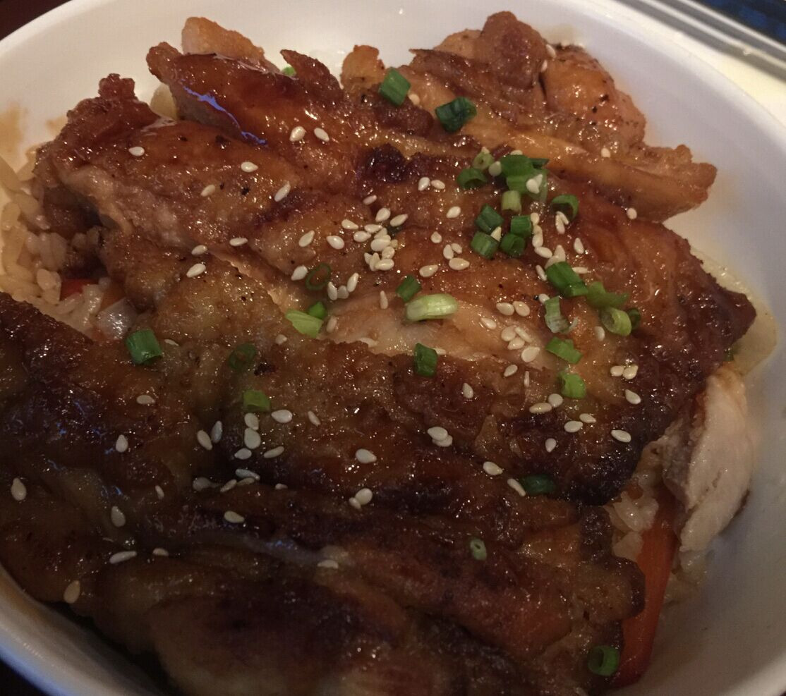 鸡肉拌饭,照烧酱淋上去后很入味又不会很咸,缺点是端上来不太热,吃到后面凉了,口感明显变差