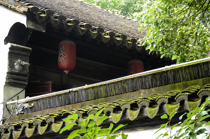 唐寅园的旁边,透过围墙,见到两个茶字灯笼。隔壁应该是茶馆。