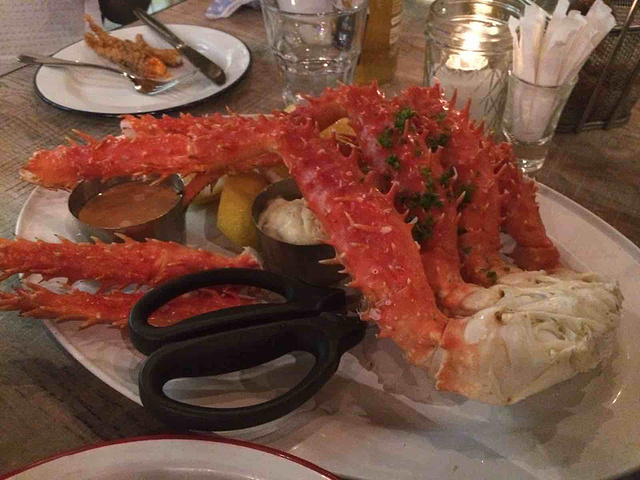 这简直成了螃蟹爱好者的食堂,每天都是人满为患,要不用排队的话5点半左右去正好。反正我每次都得稍微排上10多分钟的样子,才能有位置。同样是坐落在海边,但是与其他走精致餐饮路线的餐厅不同,这家餐厅给我的感觉相当轻松愉快。服务员都是年轻人,态度也很轻松友好,让人觉得舒服。 我常常点这家店最有名的两种螃蟹,菜名记得不是很准确,大概是1kg装的蓝泳蟹和800g的帝王蟹。两种蟹做法不同,一种用奶油、香蒜烹饪,一种水煮沾酱料。不同的风味,都是一样好吃。蓝泳蟹便宜一些,肉没有帝王蟹那么扎实,吃的是个口味,和1kg螃蟹任你宰割的畅快。帝王蟹肉质紧实,鲜甜,确实好吃,但是也相对贵。 除了螃蟹,其他菜品也很有特色,都是各类海鲜为原料的。朋友经常连点两盘螃蟹意大利面,我也是醉了。总之,这家是我在惠灵顿非常喜欢的一家,氛围轻松,价钱亲民,食物有特色。虽然不那么精致,但是餐厅给人的愉悦感并不少。赞一个!