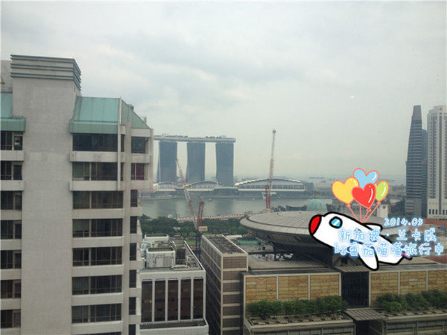 这次入住半岛怡东酒店,四星,地铁绿线city hall B出口出来,左转到路口再右转,5分钟就到了,非常方便好找。房间里有免费wifi。 在Agoda预订的时候备注写了大床高层,果然就给我们二十楼的房间,相邻的两间。我和老公这间正好是转角,比普通房间大一圈,而且竟然可以看到金沙的风景呢!