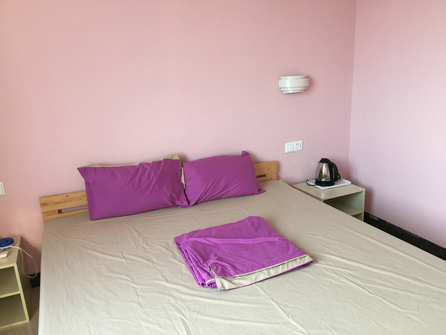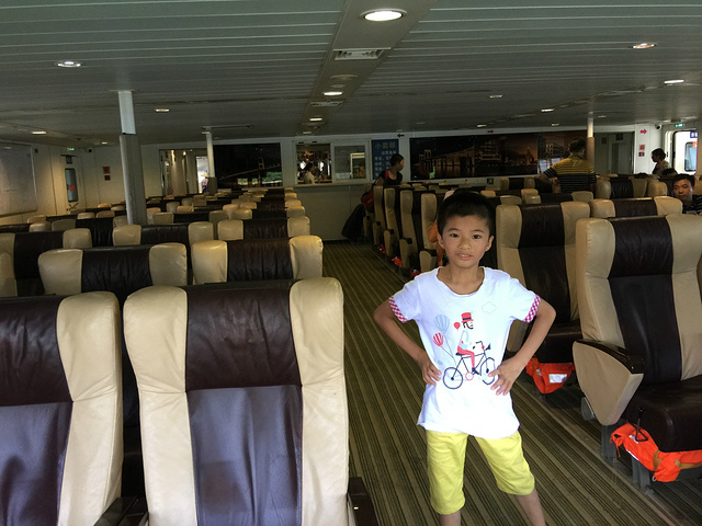 06:00银滩海边 10:00——12:00客栈休息 12:00-13:00外出觅食 13:00-15:00去客运码头取票,候船 15:00-16:20大海中 17:00成功入住雨馨客栈 熙哥早上很早就起床了(06:00)拿着铲子、水桶又去海边了。上午休息一下,就准备去坐船了。沿客栈小巷出来,往左走5米就是公交车站,坐3路车(1元/人),经过3个站就到客运港了。熙妈带着熙哥,人地生疏,提前就问好了去客运港的的三轮车(10元/车),感觉不贵,就坐三轮车了,5分钟不到,就到了。结果三轮车师傅是重庆壁山人,算来是老乡,一路上特热情,不断地给我们介绍环境。 能否上涠洲岛就看你的运气了,说不定,一个通知,就海上禁航了,不过由于我的人品好,原定的22号上岛,23号离岛就如期的进行了。24-27号就海上禁航了,偶的妈哟,还好,还好(窃喜中)。出发前在网上定好了往返的船票(新绎旅游网,就是卖船票的官网)。开船前1小时到客运港自动取票机上取票即可,很方便的。船票有多种价格,越贵的环境越好。150元以上的都是大船,相对来说没那么晕船。150元的是最下层,离发动机很机,整个航程都“嗡嗡嗡”直响,但相对来说,稳定性好,没那么晃,也没那么晕,位置就像飞机的普通舱。180元的就中上层的,环境较好,也能透过窗户看见海,还发矿泉水呢,但易晕船。熙哥上涠洲岛是180元的船票,下岛是150元的船票。而120元的是小船,特晕船(听网友说的,建议别坐)经过1个小时的航程,渐渐的就见到涠洲了。在船上联系了雨馨的老板彪哥,请他来接一下,二话没说,派了个年轻帅小伙来接,看着我们娘儿俩,还帮忙买上岛的票(上岛票大120元/人,小60元/人)。一般情况下,上岛后,到岛的上任何地方都通过坐三轮车或是观光车都可以到达(30元/人),当然,我们是提前和客栈老师联系了,就是免费接的了。 17:00成功入住雨馨客栈。客栈已经有很多旅友入住了,给我安排是大床房,如下图所示,新装修的,很上档次,也很干净,最主要是安静,站在楼顶,可以看见海,晚上能听见曲曲声,海浪拍岸的声音。收拾好后,下来院子,看见很多旅友在自已下厨,没看见老板,见一帅锅,以为是老板,结果不是,师锅很热情的向我介绍环境。说是老师彪哥买菜去了,熙妈看到别的旅友吃得香哮喷喷的,嘴馋了,但彪哥买菜在回程中了。结果,为了熙哥娘俩,彪哥又去了一趟菜市场帮熙哥买海鲜(10只鲍鱼,1斤鱿鱼,6只皮皮虾,4只螃蟹)才100多块,偶的天,这儿是吃海鲜的天堂。由于岛上南、北交替停机,晚上停了4次电,被热醒了4次,也不能怪彪哥啦。 客栈离贝壳沙滩很近,只有5分钟就到了,但海滩很脏,很多白色垃圾,不及银滩好玩,但有很多贝壳,可以拾得很高兴,由于人少,还可以在沙难上写字。晚餐后就在周边漫步,结果看见了火龙果园,见天了木瓜树,火龙果树。