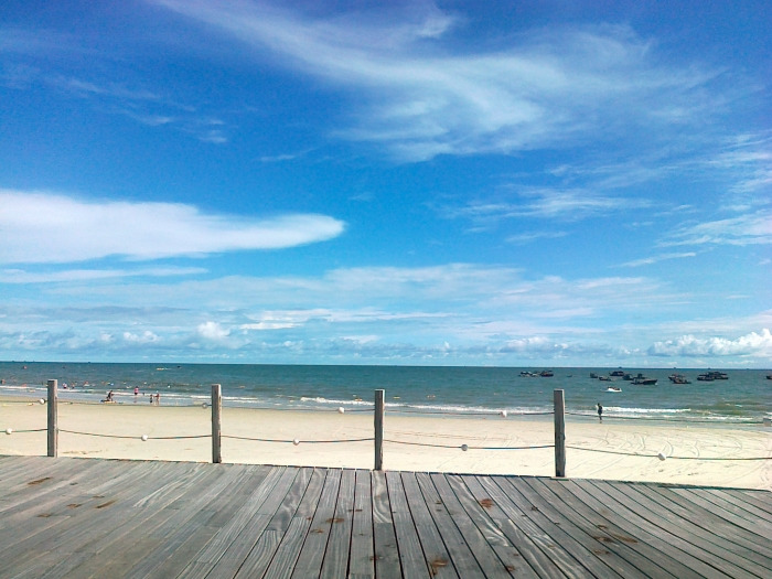 去涠洲岛途径北海,晚上看到很多当地人去银滩,而且从北海回长沙时,途径南宁,很多南宁人都在银滩避暑。北海银滩区域内的海域海水纯净,陆岸植被丰富,环境优雅宁静,空气格外清新。沙子晶莹洁白,掬一把在手里,如精盐一般。因为沙子细腻致密,游人在潮水刚退去的平坦宽阔的海滩漫步,甚至连脚印也不会留下。不过,走在沙滩上多少还是会留下些许印记的。在银滩,即使不下海游泳,坐在海边也是可以不知不觉待上半天,从烈日当头等到夕阳西下,就静静地看浪花起落,往复不息。面朝大海,即使其他地方仍是寒冬,内心也会春暖花开。最佳游览时间:每年3月~11月 小贴士:到银滩玩,下海游泳,请事先带好泳衣、泳镜、游泳圈等游泳装备,如果嫌麻烦,银滩附近有许多出售或出租游泳用具的小摊,只是价钱不便宜;游泳时切勿到深水区和无救生员看守区,不要离岸太远,一旦起风涨潮马上上岸;远离海上摩托艇,注意安全;海边的阳光充足,也很“毒”,游泳后的皮肤很容易晒脱皮,要携带防晒护肤品,注意保护。