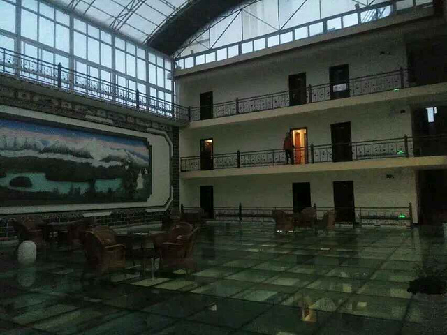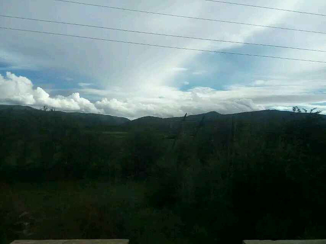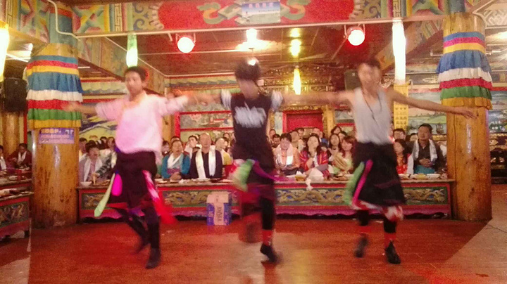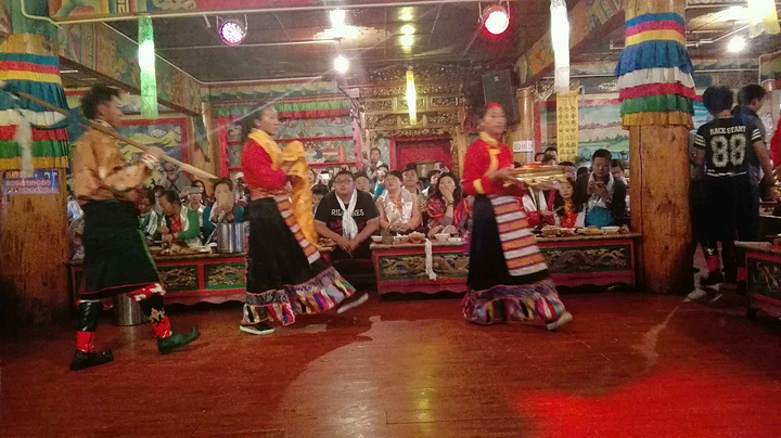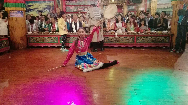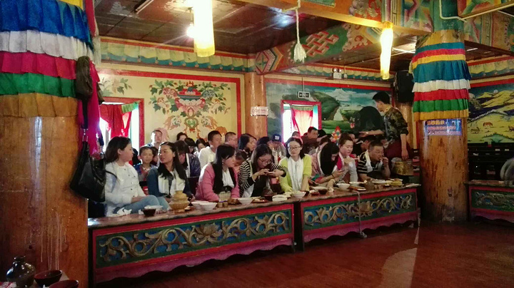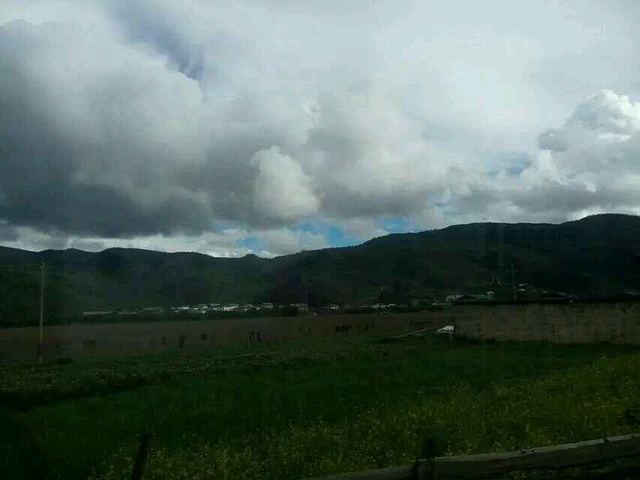 本以为歌子的至理名言会让我也淡定点,但看到美丽的画面我还是会忍不住去把它拍下来,算了,境界就这样了,慢慢修炼吧。我和歌子都说,这趟旅程,光是在普达措看看已经值了,怎么说呢,除了门票很贵的因素,更多的是对这个景点的肯定。普达措公园的美,是大自然的和谐之美,高山、湖泊,原始森林、草原野花,枯枝、草甸,野生动物,在这里随意搭配,都不会让人觉得冲突,所有的画面融合的那么自然,就连成群的游客们走进去,也没有打扰到这份和谐,反而和这自然的一切一样,成为了美丽风景中的一部分,装点并丰富着这和谐的画卷,再加上云南那美丽的蓝天白云,估计人们走在里面都得醉了。可惜我们没碰上,而出了景区坐在车上的时候天边的美丽的云彩就出现了,唉!晚上导游带我们去了迪庆的一个藏族村落看藏民表演吃牦牛肉喝酥油茶品青稞酒,气氛异常活跃,所有人的情绪都被各自的导游和现场表演的人们带动起来,大家拍手跺脚喊着导游教的简单的藏族和表演的人们互动着,估计在这一刻,所有人都把自己的不开心不愉快抛开了。在吃饭的时候我和歌子跟一个郑州的女孩琴琴坐在一排,一路看着她带着五十多岁的爸爸旅行,就说哎你这样真的很好呀,带着爸爸到这么远的地方玩,琴琴避开叔叔小声跟我们说,刚这老头不是我爸爸,我都郁闷死了,我来丽江本来是要找艳遇的,结果昨天晚上刚到丽江古城碰到这老头,在古城转不回住的地方了,我送他回去送到十一点,他听说我要报团自己一个人也不知道去哪儿玩就跟着也报团过来了,说是这样说,但琴琴对老头是真好,一路上处处照顾着老头,就像是老头的亲闺女😊。知道她回丽江后客栈还没定,我和歌子都推荐她去我们的住客栈,于是给老板打电话提前订了床位,我也让老板把我换到了新店。旅行团给安排的吃饭住宿都还不错,本来是两人一间的,但琴琴一个人要补差价就换成了三人间,刚好三个人也可以聊聊天。听琴琴说他是飞过来的,我们都问她提前多久订的飞机票,琴琴说她是临时决定来这儿玩的,就一个星期的时间,买的全价机票飞过来的,真是土豪呀,听得歌子直呼,土豪我们做朋友吧,而琴琴在听说我坐了二三十个小时的火车过来也佩服得不行,我说咱是穷游,刚好有时间,不着急。琴琴说我就说嘛,出来玩,要么有足够的钱,要么有足够的时间,钱多就可以快来快回中间留点时间就可以玩的很好,时间多了省钱也可以玩得很好。总结得很到位😁。
