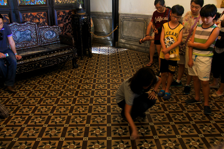 此时解说已经开始了,全程英语,只能听个大概。今天这位解说员根据她自我介绍,还是张家的后人哦。30多位游客有一部分来自欧美,另外楼主感觉有好些应来自新加坡,大家都围在了解说身边。听着讲解,似乎觉得这里每一块地砖、每一件家具甚至只是一根普通的梁柱都大有来历。张弼士经过多年努力已然富家一方,后来被清廷任命为驻槟榔屿领事、新加坡总领事等职,这座宅子就是其被任命为驻槟榔屿领事期间修建的宅子,不对,我还是称呼为行宫吧,张土豪住过的豪宅实在太多了。。。