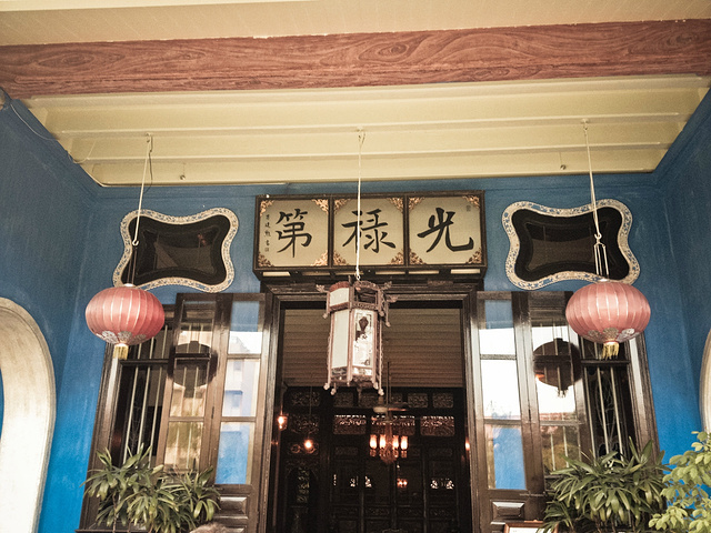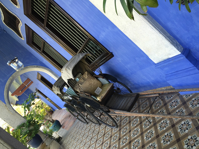 在张弼士去世以后多年,这间宅子因疏于打理渐渐破败,后来为几个文物爱好者收购重新打理后才有了今天的模样。老宅的一部分已经改造成高级酒店,古色古香,并且入选全球十大老宅。听讲解,似乎故居以前不是蓝色的,只是很久以后刷成了这样,才出现蓝屋这叫法,这点是完全出乎楼主意料的,此前一直以为从建宅起蓝屋之名便在了。