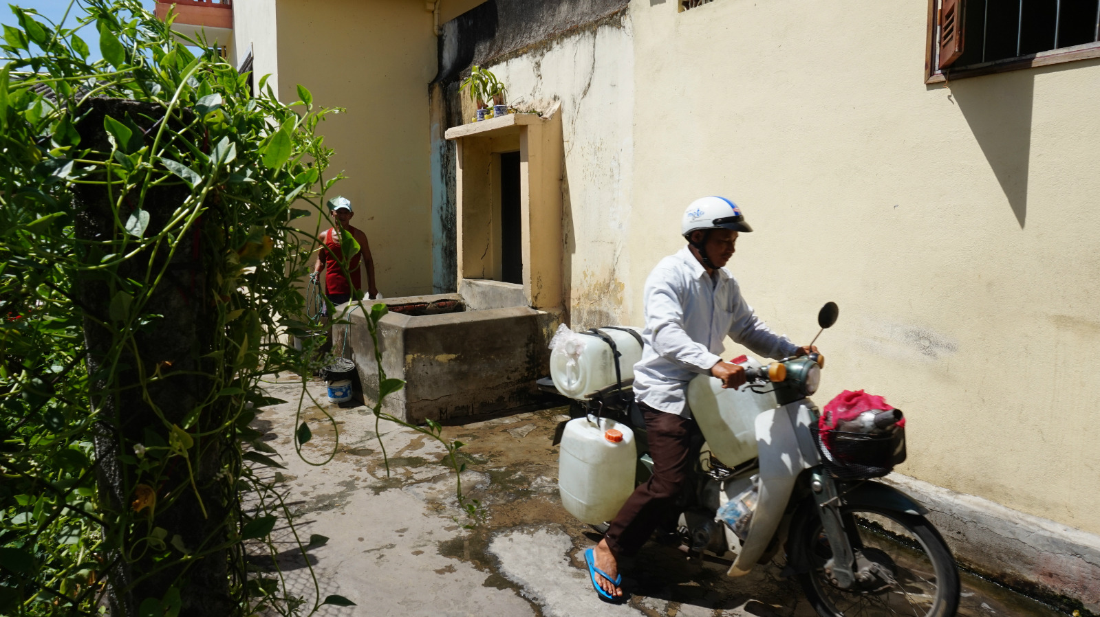 越南武秋河2015-09-05会安的人说做出来最好吃的高楼面,要用波礼井的水来做。每天都有很多人骑车到这里拿水会安的人说做出来最好吃的高楼面,要用波礼井的水来做。每天都有很多人骑车到这里拿水。这个井水很青,从来没有干。