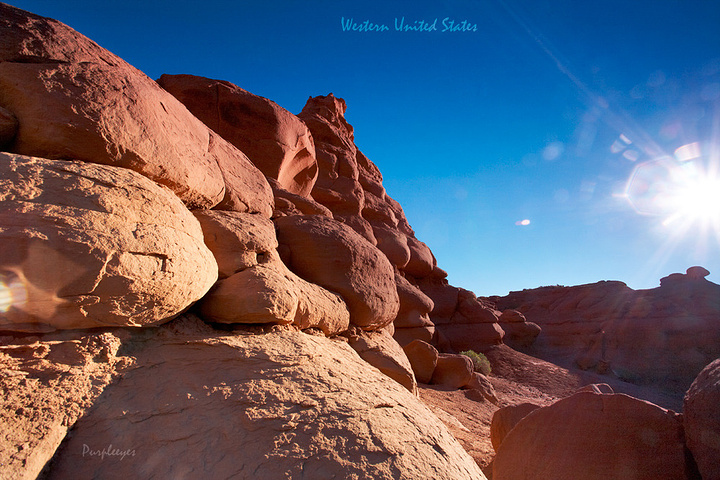 就跟我刚才说得一样,这里的石头都是圆的,颜色虽然也红,但显然跟布莱斯峡谷的石头颜色是有非常明显的区别的。