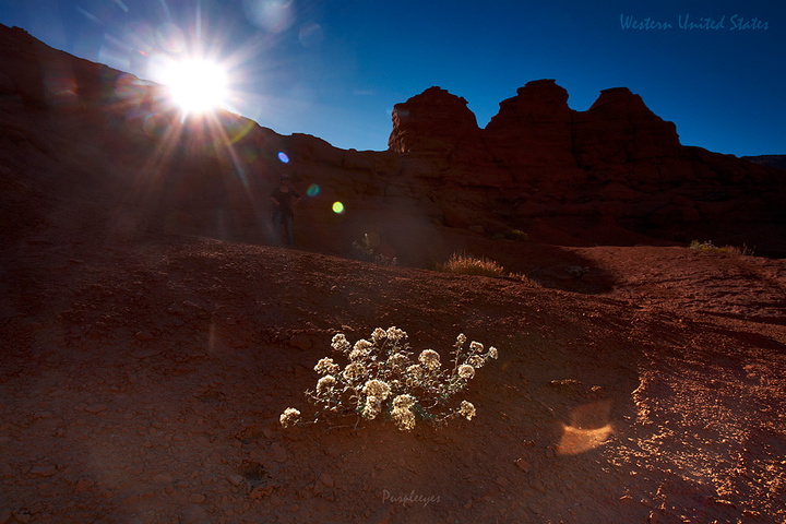 这时的阳光已经渐渐变低,而在植被稀少的地方偶尔出现的野花在阳光的照射下都是非常惊艳的,我忍不住又拍了一丛。