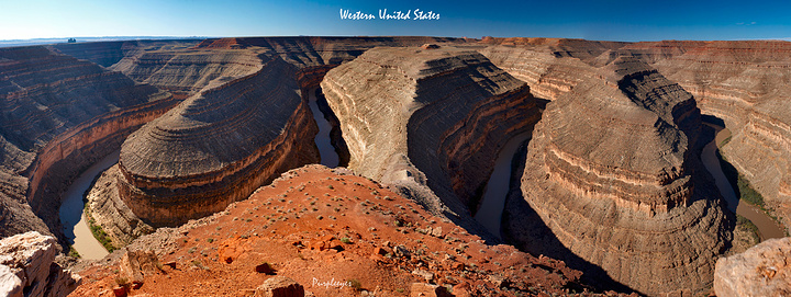 鹅颈峡也是一个类似于马蹄湾的景点,我们在一条平路上开着开着,地就突然陷了下去,这个峡湾它就出现了。只不过它不是只拐了一个弯,而是拐了三个弯,我想如果旁边有个制高点的话,这地方肯定看着要比马蹄湾壮观多了。可惜现在这个地方旁边并没有相对更高的制高点,所以也导致我没办法一下子拍到鹅颈峡的全景,只好试试接片儿了。这三个土丘,实际上看起来要比拍出来更加壮观,我个人感觉~