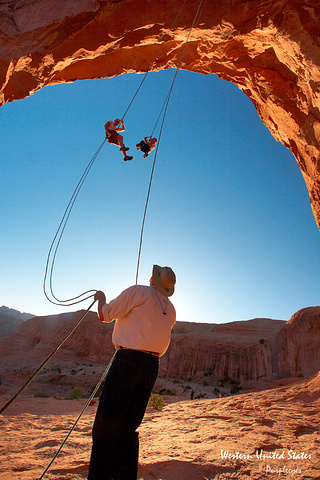 而这个主景点,也非常壮观,这座非常大的拱门里,居然能飞过一架小型飞机!而现在呢,居然正有人在那里玩儿攀岩,简直太酷了!!