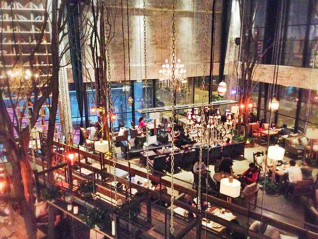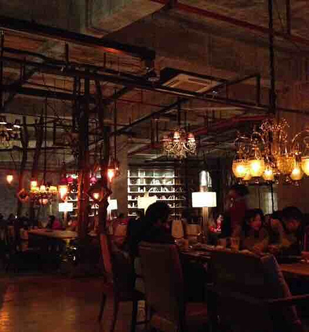 目前长沙有两家漫咖啡,一家在浏阳河婚庆园附近,一家在湘江世纪城,萝卜觉得漫咖啡是长沙最有情调最浪漫的咖啡店。淡黄色的光照亮着以木质材质为主的咖啡馆,让人觉得暖暖的。进店点单付款后,店员会给你一只可爱的小熊,拿着这小熊选择一个合适的位置坐下,安心等待。环顾四周你会发现整个咖啡店的布局给人一种温馨的感觉,整个咖啡店以深色调为主,除了几盏主灯,其他灯光都是橘黄色或淡黄色,木质的座椅加上柔软的靠垫让人踏实。进店的左手边一面墙改造成的书架,上面摆放着各种书籍,虽然是装饰品,但给整个环境增添了一丝文艺。 屋顶上盘旋着工厂式的管道,墙壁像铺着不够均匀的水泥,但室内又有林林总总的树干,桌子用的是回收的旧木板。屋顶上高低不齐地吊下来各式水晶灯,每盏都离桌子很近,所以即便整体空间很大,只因为一盏灯,也就瞬间有了私密感。两层楼的设计让整个咖啡店很空旷,让店内喝咖啡的人能够面对面的畅所欲言。这家店很注重细节,就连洗手间的马桶都是电动更换一次性马桶坐垫。只要看到烟灰缸里有烟头服务员就会过来更换。注意事项:漫咖啡外的马路边禁止停车,就算路边上停满了也别停,萝卜就因为停路边被抄牌。吃喝推荐:华夫饼、火腿三明治、芒果冰淇淋、摩卡咖啡。