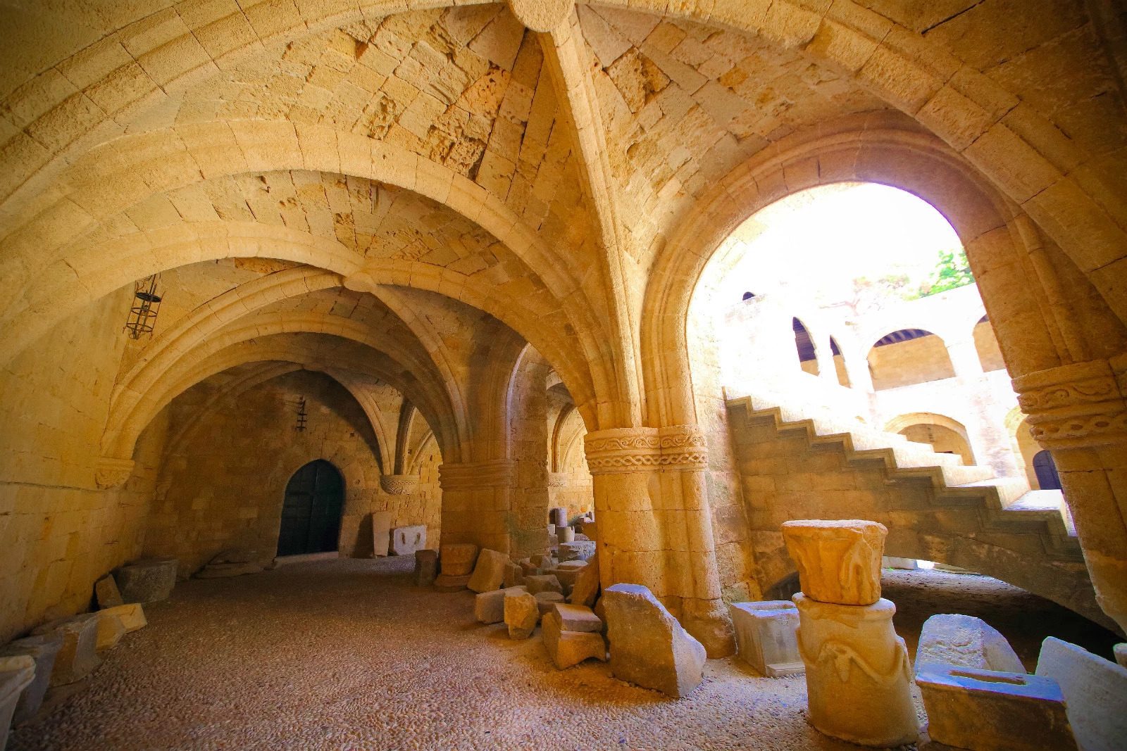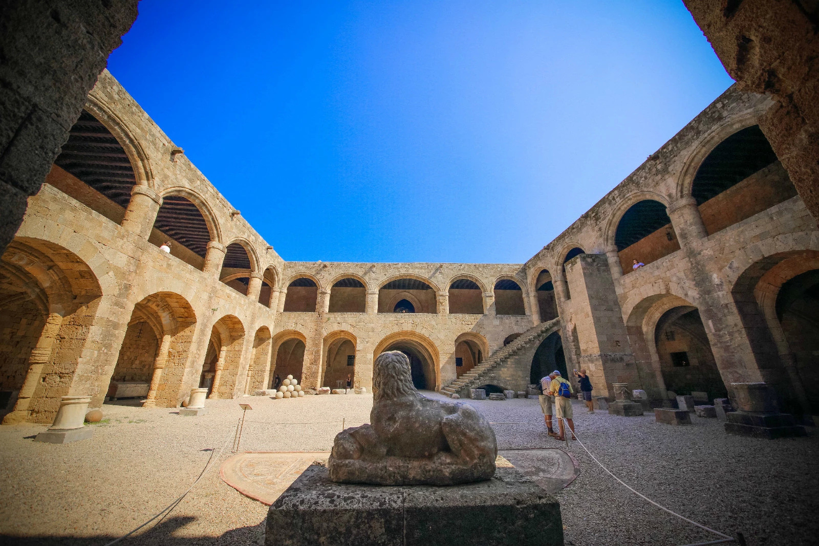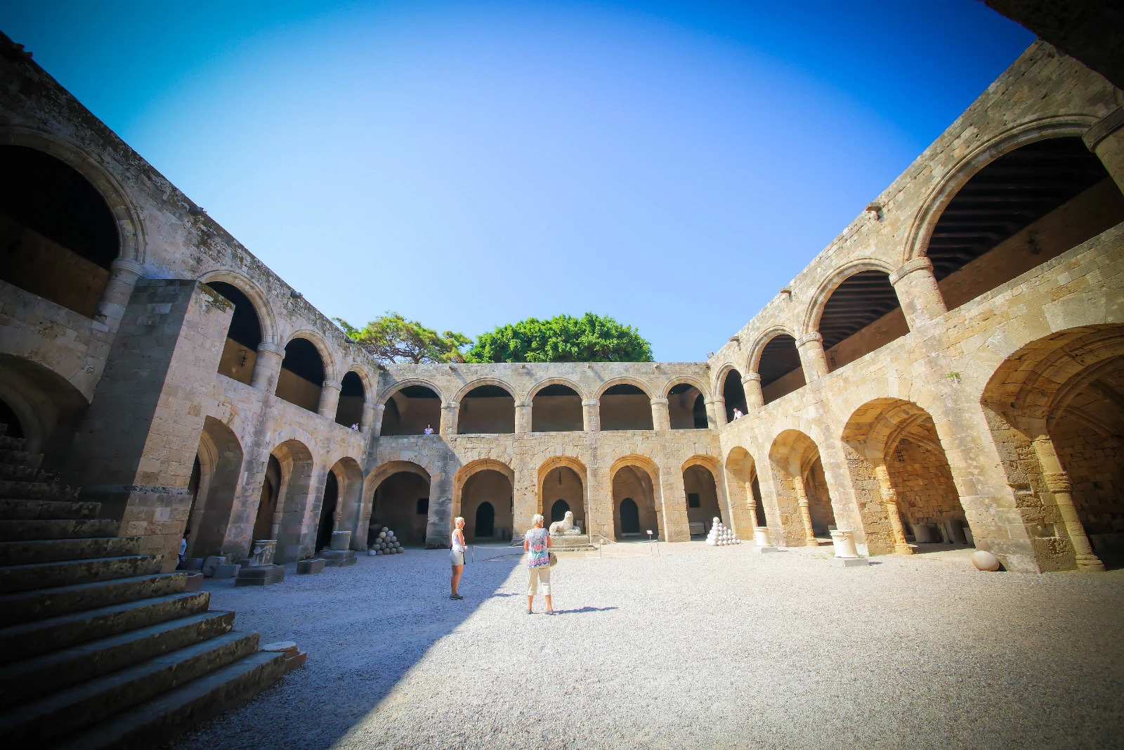 【看点2——首层圆形石球】在一楼的广场位置,有很多堆叠起来的圆形石球,他们不是简单的装饰品,它们也大有来头:它们是中世纪的文物,古时候还没有大炮火药的时候,士兵打仗的弹药。要用投石机来进行发射攻击。现在这些石球已经失去了作战作用,但是依然没有被罗德人遗忘,用来作为罗德古城的装饰,或者作为路档。