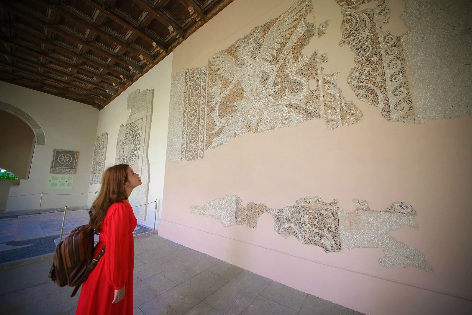 【看点1——首层回廊】进入考古博物馆,首先最吸引人的是一楼的回廊,这里真的非常漂亮,虽然是用石头建造的 ,但是走廊天花是拱形天花,线条非常优美。挖掘出来的文物就这样放在回廊,也没有拉起任何警戒线,文物多,就是这么任性。