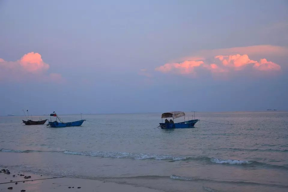 石螺口是看日出日落的好地方,所以来到涠洲岛肯定会来这里,来到这里感觉石螺口海滩和其他的海滩有点不一样,来这里可以感受到打鱼人的日常生活,更加原生态,所以来到这里非常喜欢这里的原始与自然,这里的沙滩沙子很柔软,赤脚走在上面很舒服,傍晚的时候来到这里,阳光不是很耀眼,加上天空的湛蓝及傍晚有点朝霞映在海面上,海水蓝蓝的,周围显得一些非常宁静而美好,非常喜欢这里。【位置】石螺口海滩是在北海市涠洲岛西部石螺口景区这里,如果是从北海到涠洲岛的话需要乘坐船过来的,乘车到北海国际客运码头,早上8:30开船出发到涠洲岛,建议提前把票买好。【门票】石螺口海滩这里是不需要门票的,但是来到岛上,这里有很多的太阳伞和躺椅可以租凭休息,海边租借躺椅10元/人。这里的潜水价格是200元/人,大约半小时左右,建议可以和教练多砍砍价。【提示】滴水丹屏是赏日落的最佳位置 ,也就是有块石头在滴水的这个地方。【提示2】由于这里刚好就是在岛上,所以如果要吃饭的话建议可以买一些然后到渔民家去加工或者饭店加工这样会比较划算一些,或者如果是住在岛上的客栈,可以直接拿到客栈里面去加工。【提示3】如果有晕船的人来到这里,建议上船之前提前服用晕车药,而且最好观察好这里的天气,旺季的时候最好提前把票给买好。