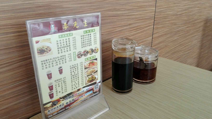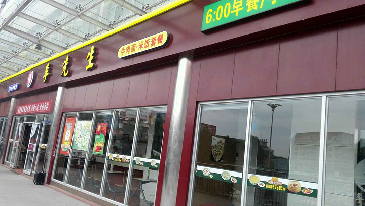 李先生牛肉面快捷餐厅算是一家中西结合的连锁餐厅'在全国分布蛮多的,特别是机场车站等大多都有加盟店。这家在河南省新乡市火车站平原路附近,位置不错,靠近火车站,来往的旅客蛮多的!外观也比较不错,装修风格和大多数店面一样,红色格调!这家店面布局比较狭长,和那种多个门头房连在一起的感觉。内部环境也是比较优雅的最起码卫生环境的感觉比较干净整洁,桌椅排放也是井井有序,服务态度蛮好,比较职业规范,有服务人员到桌位,可以点餐,早餐比较实惠,五元起,小米粥加牛肉萝卜丝饼,还有小笼包6元3个,八宝粥五元一份,还有重庆小面十元,拌面十元等面食!油条三元看,卤蛋两元一个!要了个牛肉萝卜丝饼和小笼包,一份小米粥11元,还送了份泡菜,感觉还是蛮不错的!干净卫生,来往火车站的可以来看看尝尝!正餐有牛肉面和套餐,加州牛肉面一般是19元一份,米饭套餐28元左右,还有小菜一般是9-19元不等!早餐一般六点开始供应!总体来说还是一家非常不错的快餐厅!推荐