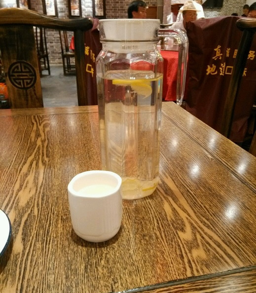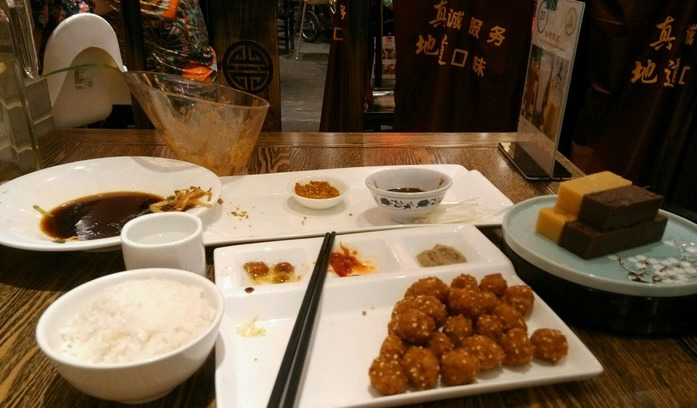 环境挺好,门脸感觉有点不大气但是里面挺宽敞的,有二层,内部装修仿古风,服务生穿着也很有民国味道,貌似现在流行。上菜很快,全程都有人照应,餐后主动帮忙打包,大堂经理也很挺给力的。主动但不过度热情,让客人感觉很舒服。不点饮料的客人提供免费的柠檬水(可惜是热的,有点浪费柠檬啊)