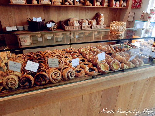 各式各样的Danish看的我眼睛都花了。传说丹麦的面包起源于维也纳,所以在丹麦人心中又叫维也纳面包。丹麦的面包居多都是高油高糖食品,黄油的含量达到了30%,减肥人群要慎吃。我起初在加拿大吃过,不过只知道他们名字叫Danish。 真的好好吃,也超级超级肥,和超级甜。