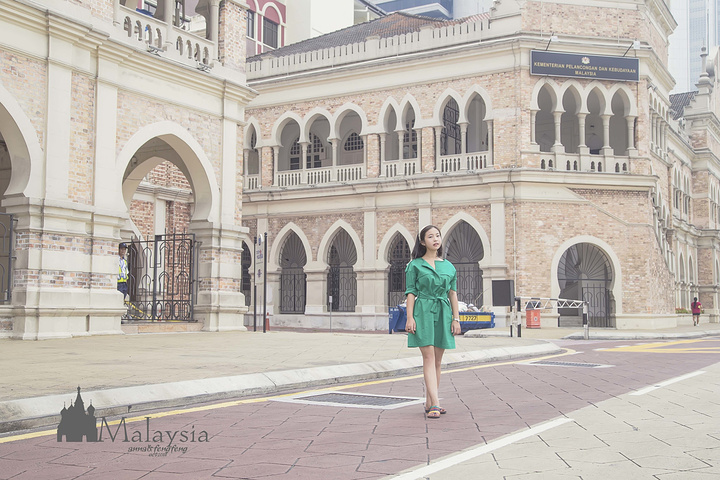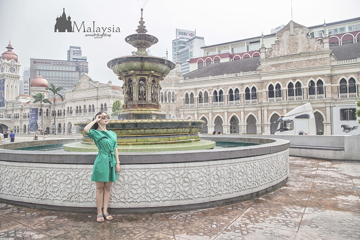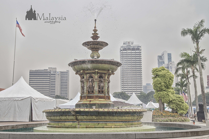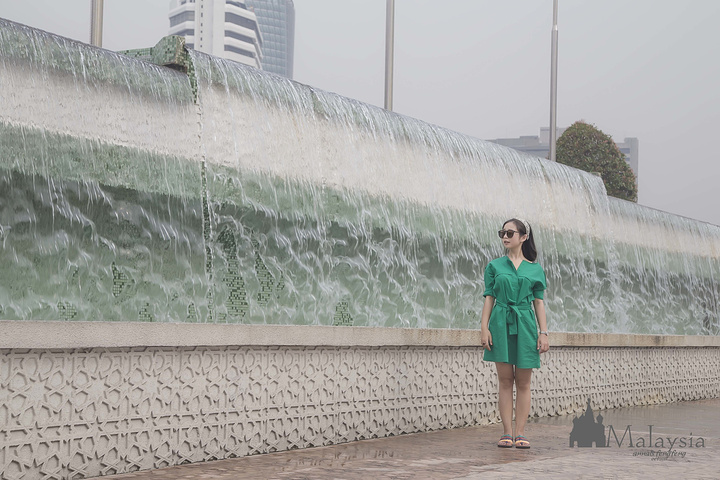 对了,忘了提,今天一天的行程全是靠双腿 一是有晚上的飞机,不想玩得太远,索性就以两个清真寺为主线,慢慢走走停停的 二也因为每个地方真心隔着不远呀(其实也是亲身走过才知道的)。去倒快轨反而麻烦了 路线是: 佳密清真寺——独立广场/苏丹亚都沙曼大厦/城市长廊/国家纺织博物馆——国家清真寺——老火车站——茨厂街 走着走着就到独立广场了~ 我也是回国后才搞清楚,原来就在独立广场,被我忽略过的那一栋楼就是传说中的苏丹亚都沙曼大厦,只是印象中的大厦是那种二三十层楼的建筑,而这里的少了现代,多了些历史感