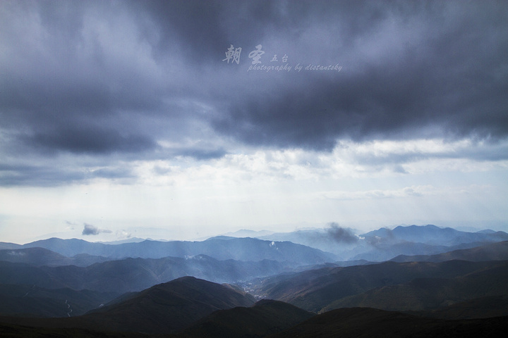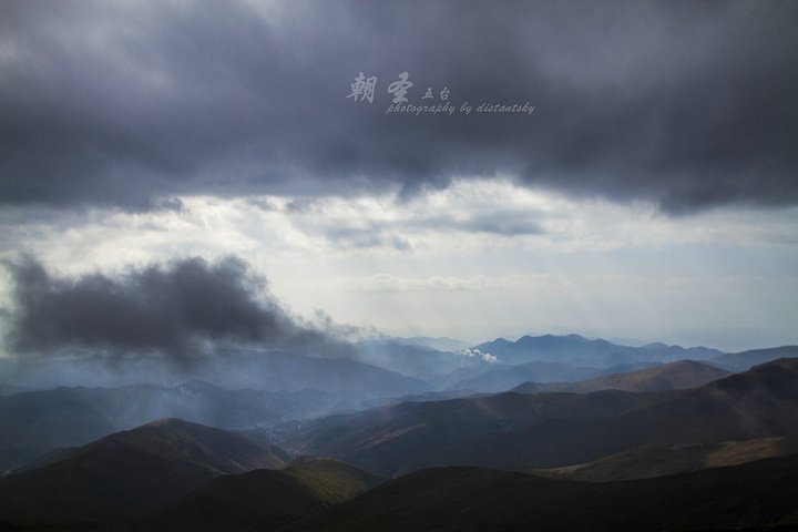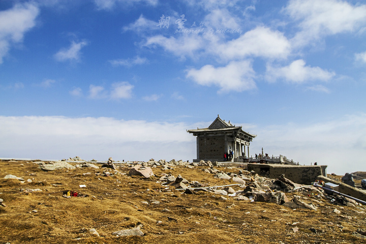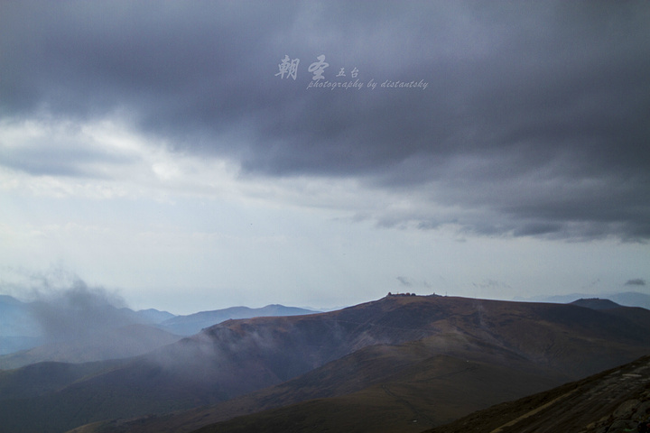 整个五台山朝台的行程就是翻越一道又一道的山峰,差别其实就是山峰的高矮。我们要去的台比较高,中间要穿越一个又一个相对矮小的山峰。由于一直要在山脊上穿行,所以5级以上的北风是我们全程的伴侣。从鸿门岩到北台顶,行程13公里。大概要走3个小时的样子。脚程慢的要更多。刚开始的路相对好走,沿着山间的小路,翻越两个小点的山峰。山不高,坡度不是很大,所以大家走起来比较轻松。 说实话,北台顶是五个台里面最难爬的!华北屋脊绝对不是浪得虚名的!前半段的山路相对平缓,距离虽然远一些,但对于一般人来说难度不大,像我这样愿意走路的人来说,即使背着40斤的背包,也是相当愉悦的。没有人们传说中的高原反应,只有清新的空气,呼吸的顺畅!另外在整个行程中,确实有个别人出现了高原反应,头疼!但是我觉得很大一部分原因是由于体力透支造成的。北台真正的挑战来自于后面三分之一的行程,全部45度左右的攀爬,这种强度对于任何人来说都是噩梦。 但是很遗憾的说,或者很兴奋的说,我躲过了这场劫难。为什么呢?当我到了真正需要攀爬的时候,一阵大风把盘旋在中台上的乌云吹了过来。几分钟内天空就变得昏暗起来。由于没有经验,真心怕下起大雨来(因为当天的天气预报报着是有雨的),上不来下不去的就傻了。所以果断拦了一辆面包车,30块钱送到北台顶。同时也结识了本次行程几位很好的朋友:司机胖子师傅,驴友青岛的一位大姐,随后还结识了青岛团队的积分大姐和一位将近60岁的领队。 旁白一下:从五台山五个台之间,除了当地免费的旅行车外,还有一些专门跑朝台线的面包车。这些司机游荡在五个台之间,随着朝台人的步伐,拉一些各种原因不能完成徒步的人群。面包车一般拉4-6人,多的时候能到8人。五个台全转下来,按照刚才的人数费用应该在人均100元左右。 书归正传,才上了胖子的车,手指肚大小的雪花就飘落了下来。原来是下雪不是下雨……不如继续虐待自己的身体了。唉!没有经验的下场啊!随着面包车的颠簸,一个个发卡弯的突破,10分钟后终于来到了华北屋脊——北台叶斗峰! 北台顶,叶斗峰,华北地区第一高峰。海拔3058米,被称为华北屋脊。台顶平广,周围2公里,从下面仰望,云浮山腰,巅摩斗杓,故又名叶斗峰。由于海拔比较高,所以气候变化非常快,每年10月份就开始下雪,在北台观雪,令人叫绝。下雪时,周围漫天飘飞,只见群山被白雪覆盖,大大小小,千姿百态,好一片银色世界。 到达台顶,赶紧找个背风的地方,避避雪,顺便拿出包中的热普洱茶,小喝几口取取暖。雪中的北台顶太冷了!好在雪下的时间不长,半个小时后,天晴了。海拔高就是这样的特点,天气说变就变,大风把云彩刮来刮去,谁也不知道哪块云彩有雨。 先去灵应寺转了一圈,拜了拜菩萨。北台供奉的是无垢文殊。拜完菩萨天就晴了。在这个寺院里找了半天都没有找到热水,后来问了下胖子,说北台不提供热水。疑问中! 北台顶的五爷庙。和台怀镇里的一样,都是供奉五爷的。先在这里拜拜五爷,还愿。等后天再去镇上继续拜,继续还愿。大家看了吗?刚才还是乌云密布,转眼间就蓝天白云了。变得真快啊!