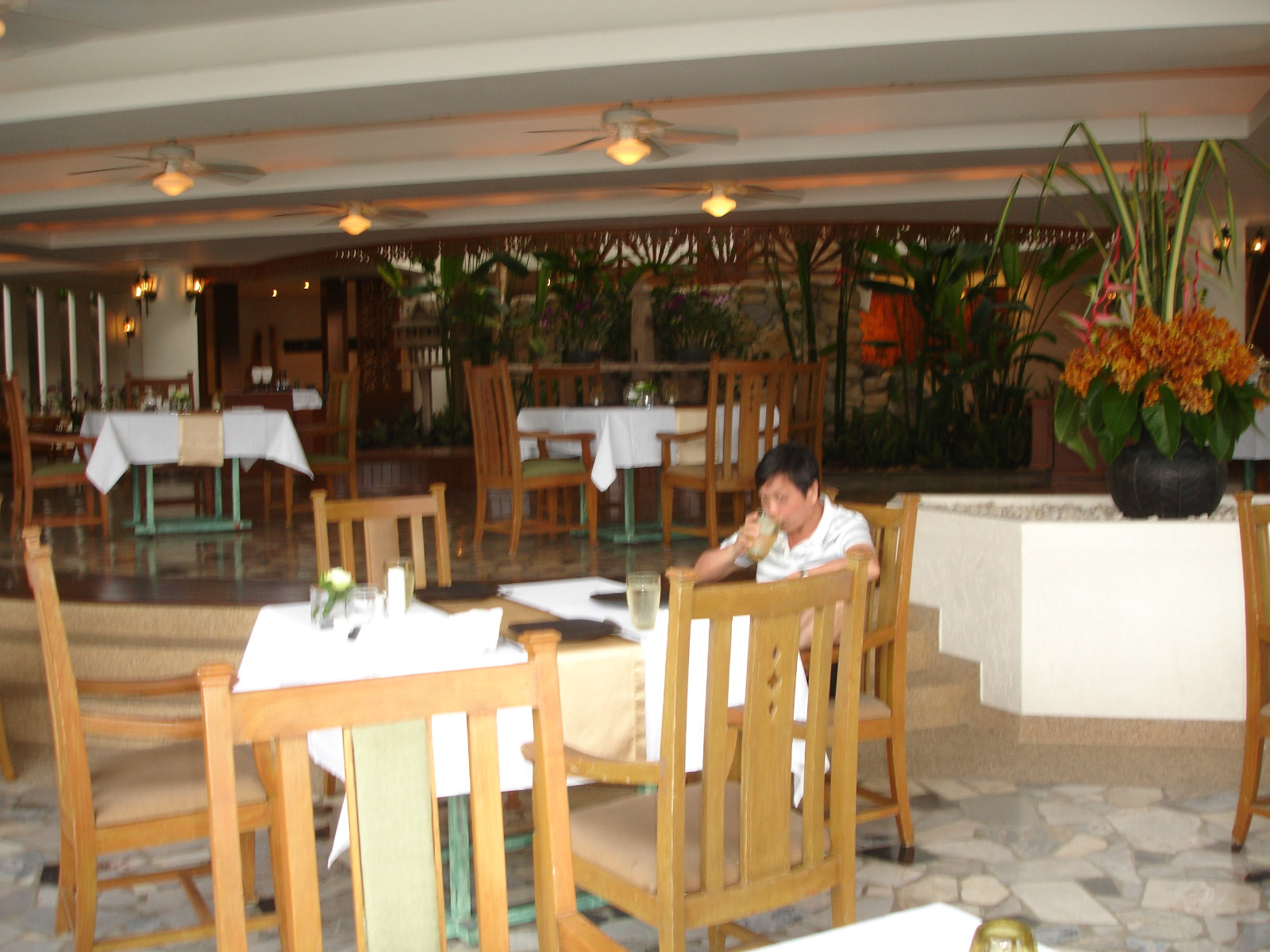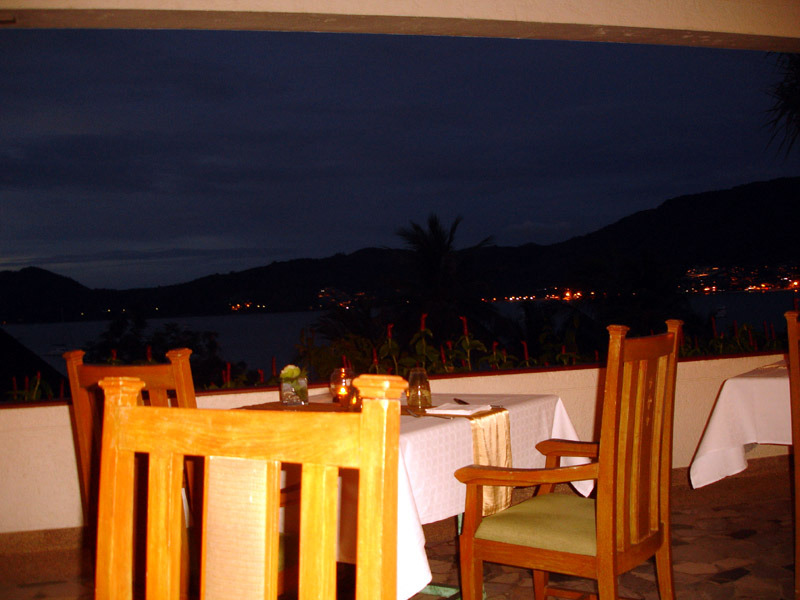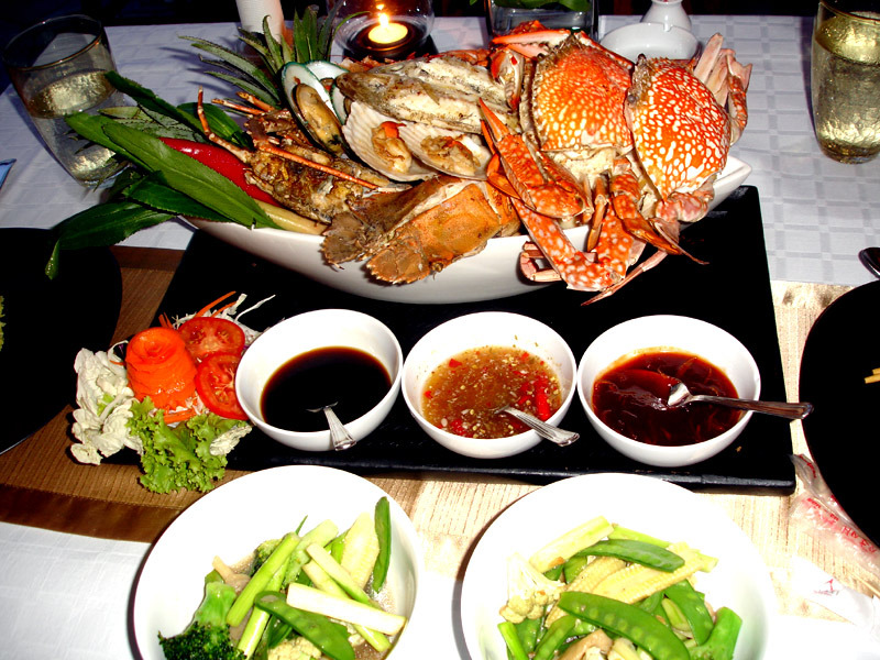 这个餐厅隶属于普吉岛的阿玛瑞酒店,位于芭东海滩,由于酒店本身位置比较偏僻,这个餐厅基本都是住客在消费。餐厅很大气,毗邻安达曼海,有2层楼,餐厅主要以意大利菜为主,也有海鲜,我们在餐厅享用了一顿海鲜大餐,折合人民币320元,还不错,有2只螃蟹,1只龙虾,4只海蚌,6只虾,还点了一份泰式小点。午餐的时候也有供应面和饭,我们找了半天终于找到一份chinese noodle,味道还可以接受,价格比外面略贵。一到傍晚时分,酒店就会在每桌上点蜡烛,你可以选择在2楼俯瞰大海,也可以到下面近距离观海,还是很有情调的。在这里用餐的基本都是老外,可能因为主打意大利菜的关系,消费需要支付服务费,服务员态度还不错,但是若是下午3、4点进去基本看不到服务员,当时想去喝杯饮料居然都找不到人,这个让人有点郁闷,不知道是不是非餐点不开业。