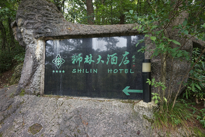 经过狮林大酒店前面,上山到达清凉台,可以眺望到对面山峰的猴子观海。碰到旅游团导游正在跟游人介绍这里的典故,还告诉我们等风来,吹散云雾,就能望见对面清晰地猴子观海……可是等来最大的一场山雨,很大持续时间很久……我们急忙穿雨衣,下山到狮林酒店门前避雨……