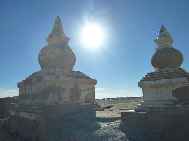 在我不远处有一个旅游团,我蹭听了一下导游的介绍,才知道黑城有一段很震撼的历史,回去网上补了一下课,具体故事是这样的: 相传,在很久以前,有位名叫哈日巴特尔(蒙古语,译为黑英雄)的蒙古族将军,在此筑城镇守。久而久之,人们便称哈日巴特尔为黑将军,此城便称为黑城。由于哈日巴特尔骁勇善战,不但晋升为将军,并深得皇帝欢心,将自己的小女儿许配给黑将军做哈敦(译意夫人)。