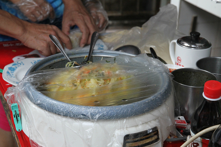 春卷,拍的时候忘记调光圈了,景深小了,电饭锅里装的是春卷包的菜