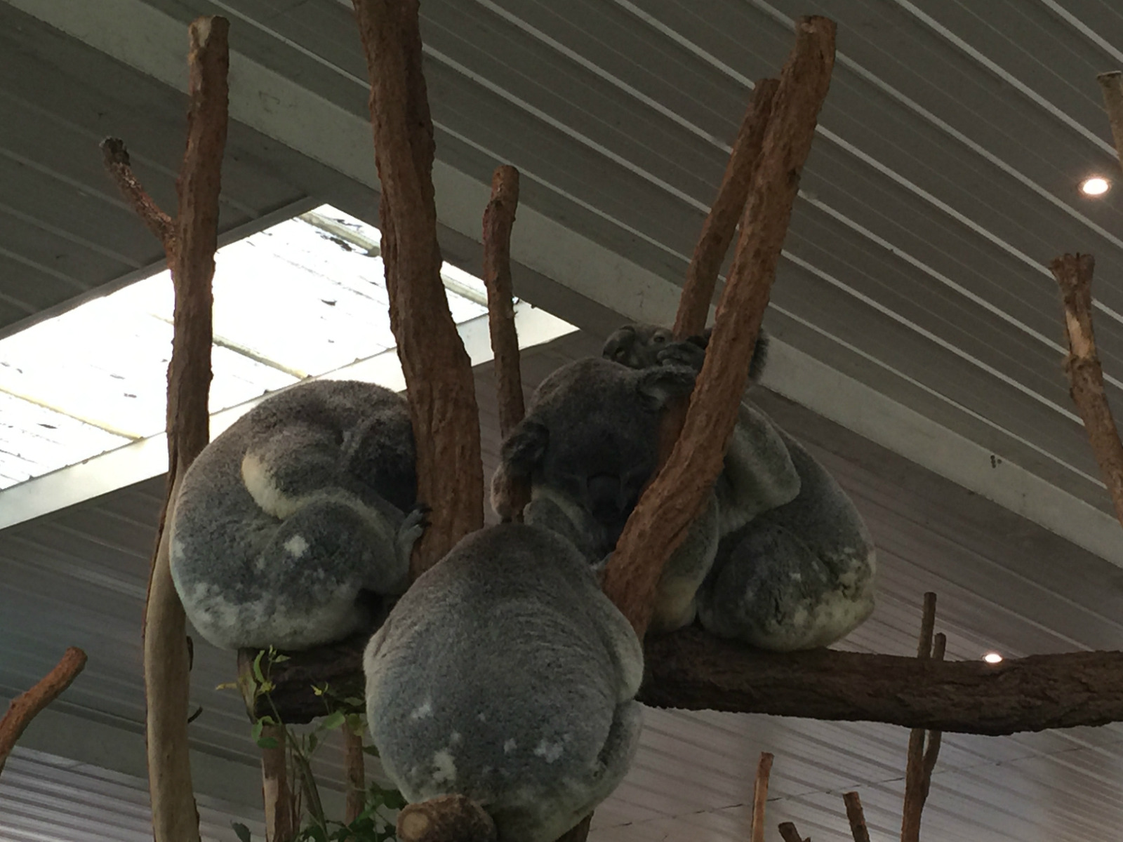 由于考拉一天到晚都在睡觉,因此他们基本都是抱团一起睡觉的,他们睡觉的时候根本拍不到他们的正面,真心的可惜啊. 如果要想看他们清醒时候吃树叶,还是要在旁边耐心等一小会. 虽说如此, 这里的考拉还是有点多, 就算等也就是15分钟的样子.