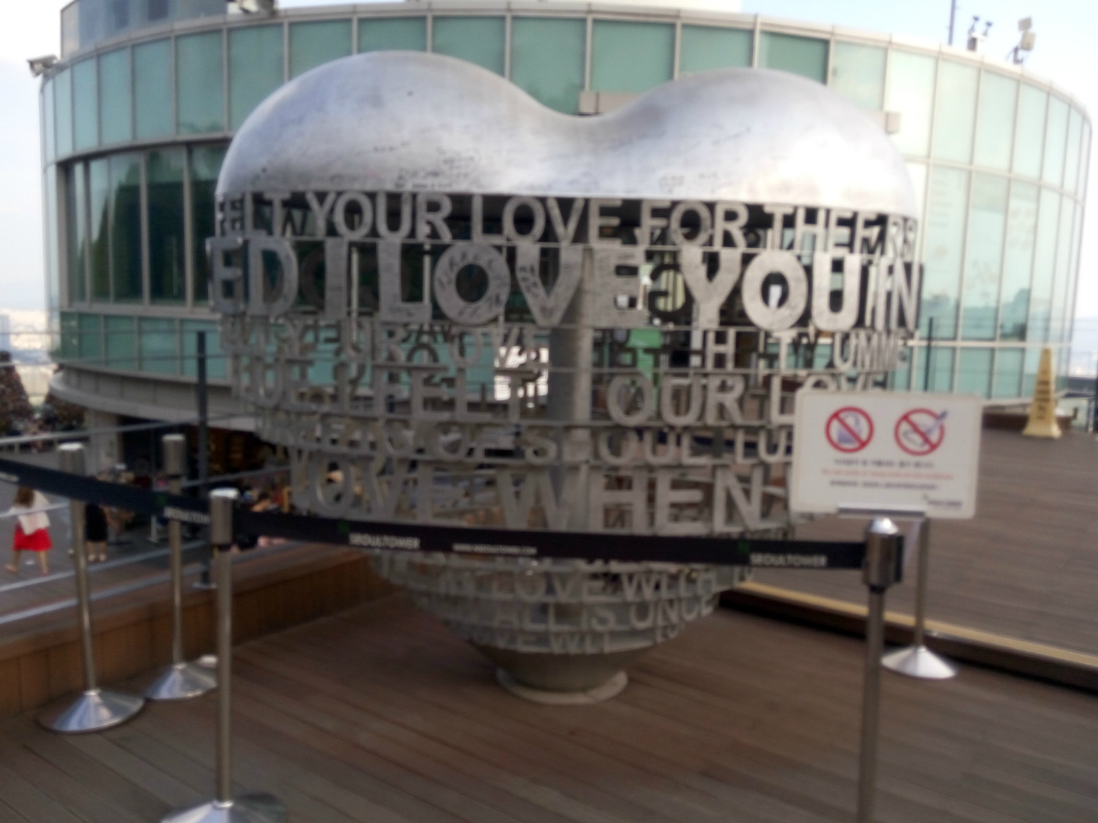 7米,建于1975年,是韩国著名的观光点。台子上面最里面的景色,这边的风景是乐天世界的方面,比较繁华
