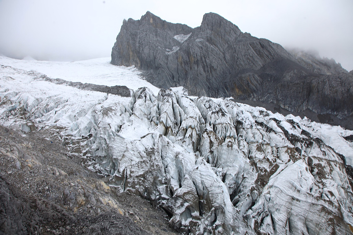 冰川,由于人类活动影响,挺导游说这几年的雪线不断上升。