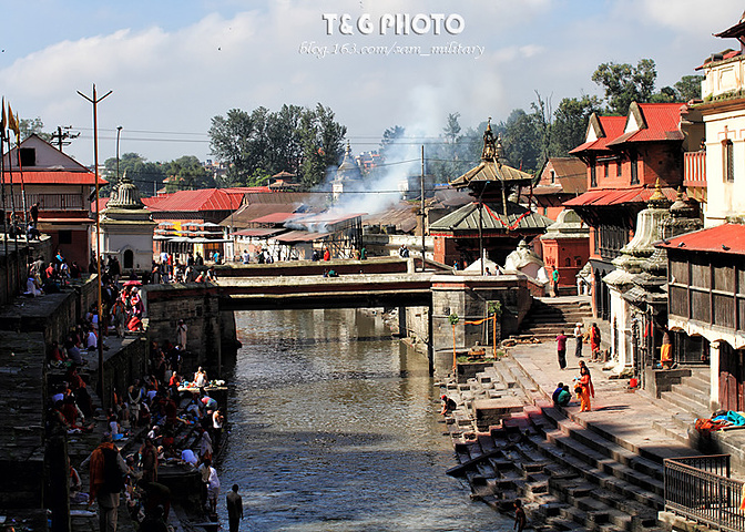 帕苏帕蒂纳寺俗称烧尸庙,源于流经寺中的巴格玛蒂河畔有六座尼泊尔佛教信徒举行露天火葬的火葬台。在这里应该是全球为数不多可以在大庭广众下直面生死的地方,火葬台河对面的河堤上每天都坐着来自世界各地的人看着火葬发呆,估计都在思考生与死的意义。