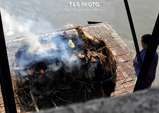 这里的六座火葬台四座位于横跨巴格玛蒂河的下游,两座位于上游。在以前位于下游的四座用于普通老百姓火葬,上游则专供皇家政要。不过现在他们的区别只有价格上的差异。听向导说,能到烧尸庙无论那座火葬台进行火葬的在当地都算是有钱人。一次火葬的收费加上家属的住宿诵经的费用没记错差不多要合人民币3000-10000。