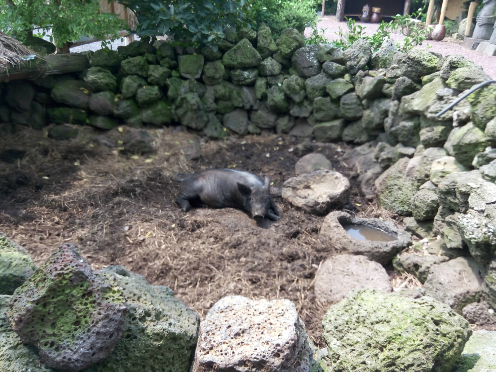 大概在民俗村里就能见到真正的黑猪。最后一张图片就是。这里的土种猪营养丰富,肉味可口,十分有名。