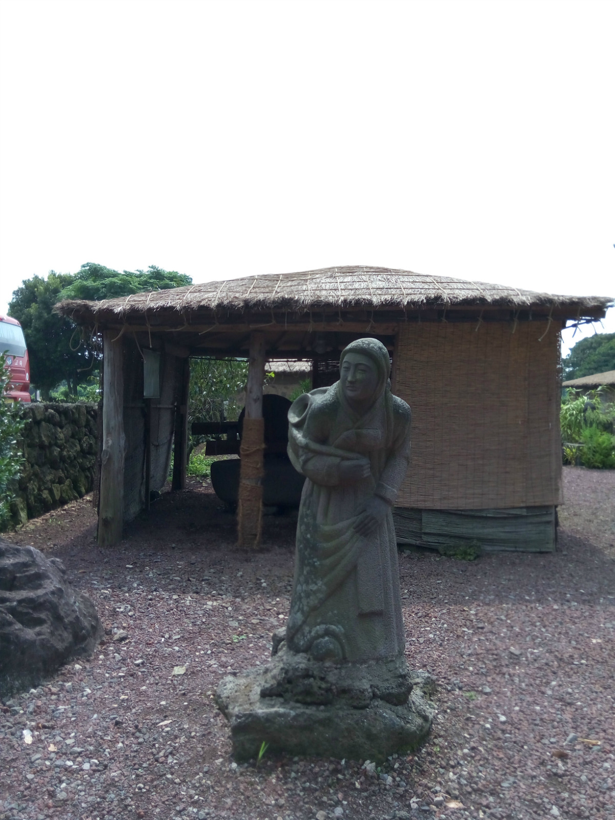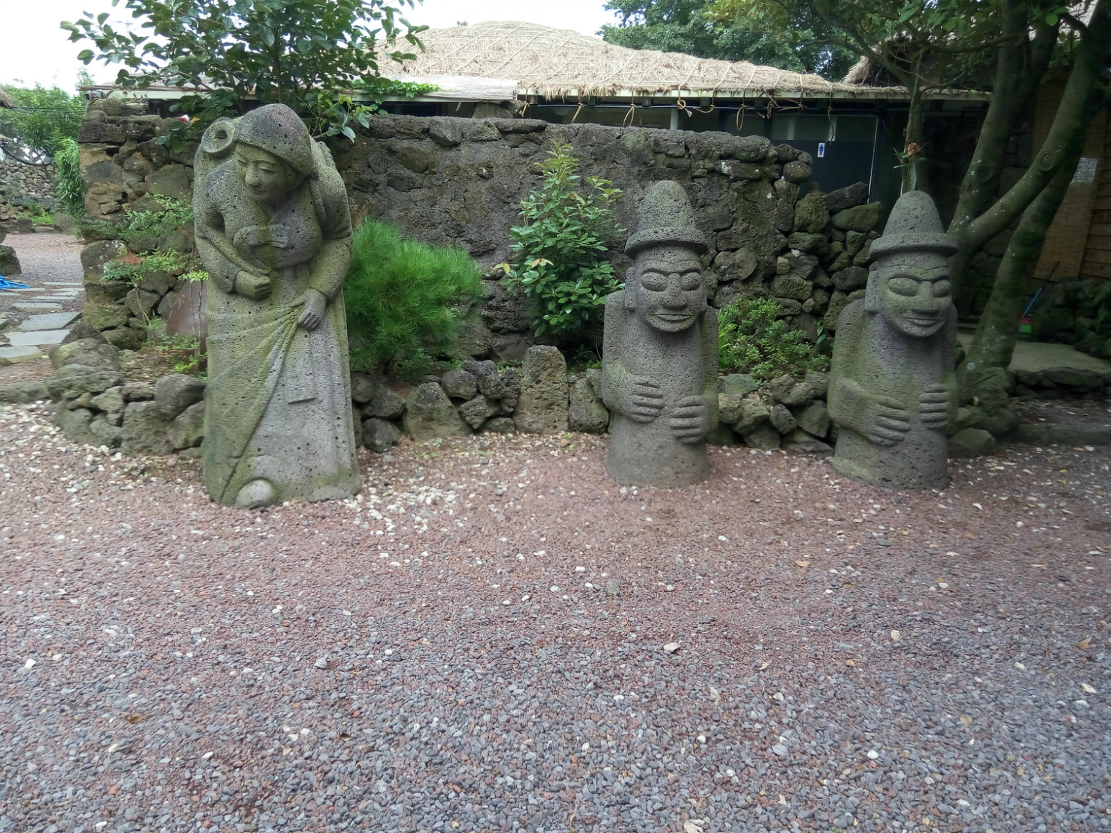 在这里还拍摄过《大长今》中的厨房场景。在民俗村入口,还能见到一对石头爷爷。