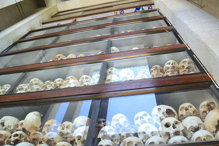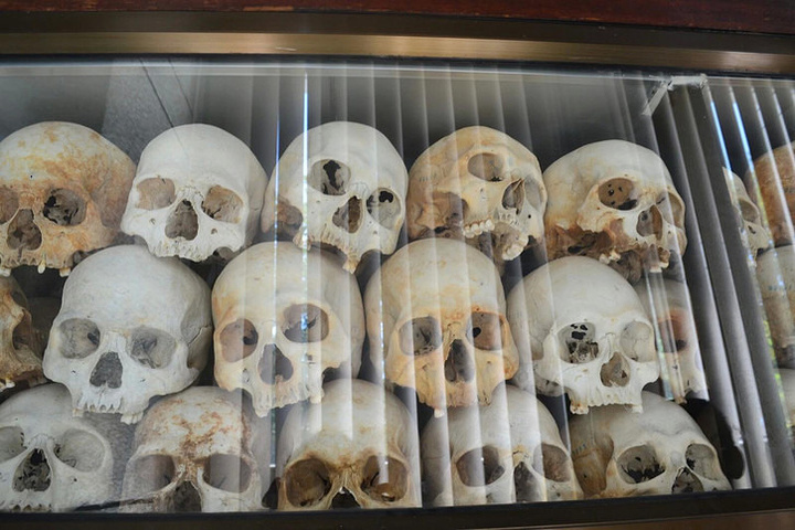 在我的印象中,首都金边应该是受到全国敬仰的地方,是一切富硕的源头,没想到司机大哥第一天就带我们去这么沉重的地方。 杀人场,仅仅是这个名字就让人毛骨耸人,曾经是红色高棉的集中营。 1975年,之后的三年,柬埔寨失去了她近三分之一的人口,死在这里的多是来自S-21监狱的犯人,包括男女老少和婴儿,到目前为止在杀人场挖出的尸体就有9000多具,所以此处又称万人冢。