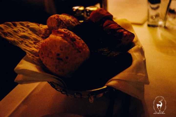 今天的晚饭,表弟带我们去了一家YELP四星的牛排馆——the capital grille,地址位于900 Boylston Street,伯克利音乐学院的旁边,一家黑色招牌,低调奢华的店。 这家全美连锁,排名前十位的牛排店,菜品和服务都是一等一,所以需要事先订位,yelp上的人均消费是四颗美元。 一进门,餐厅的整体色调很暗,人气倒是超级旺。 感觉美国人也不像欧洲那样,正式的餐厅里就一定穿的也很正式,看见不到一半的人是dressed up的,但是另一半就真的太过休闲了,怎么随意怎么来。这样也好,气氛会轻松很多。整个餐厅也没有安静到肃穆,因为座位之间间距不大,所以隔壁桌的聊天都听得清清楚楚。虽然闹哄哄的,却也很放松。 入座后先点单,由于是牛排馆,我们点的主要还是牛排。据说这里的生蚝也不错,因为中午吃过海鲜了,就先不考虑吧。 餐前的免费面包有好几种,松软可口,其实吃完已经半饱和了。
