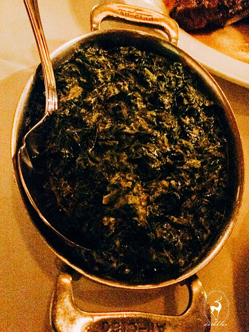 为了荤素搭配,还点了一个奶汁菠菜。因为是带锅焗烤的方式,等候时间比牛排稍长。入味,盐很少,所以吃得到奶汁和菠菜融合在一起的新鲜本味。
