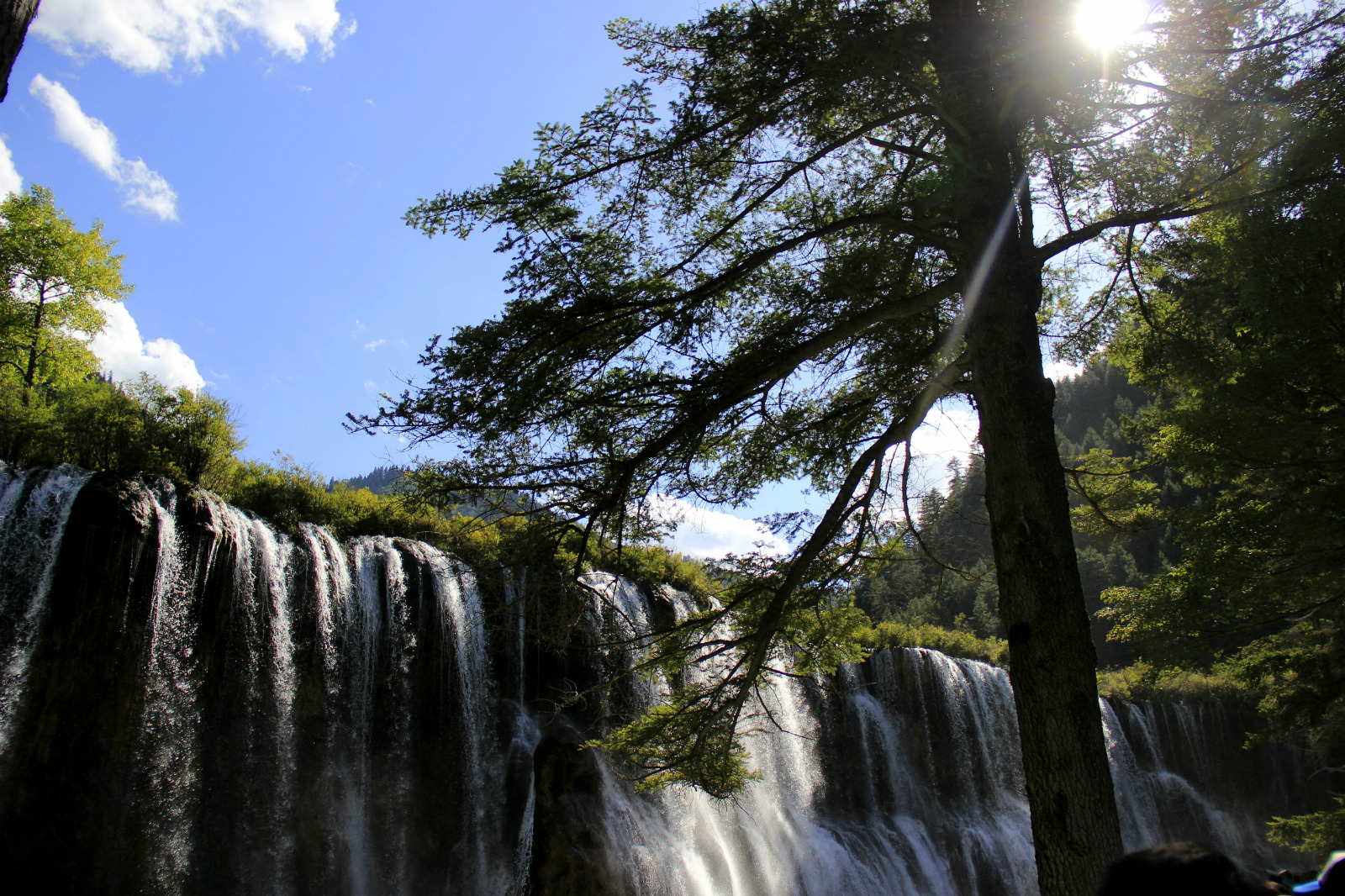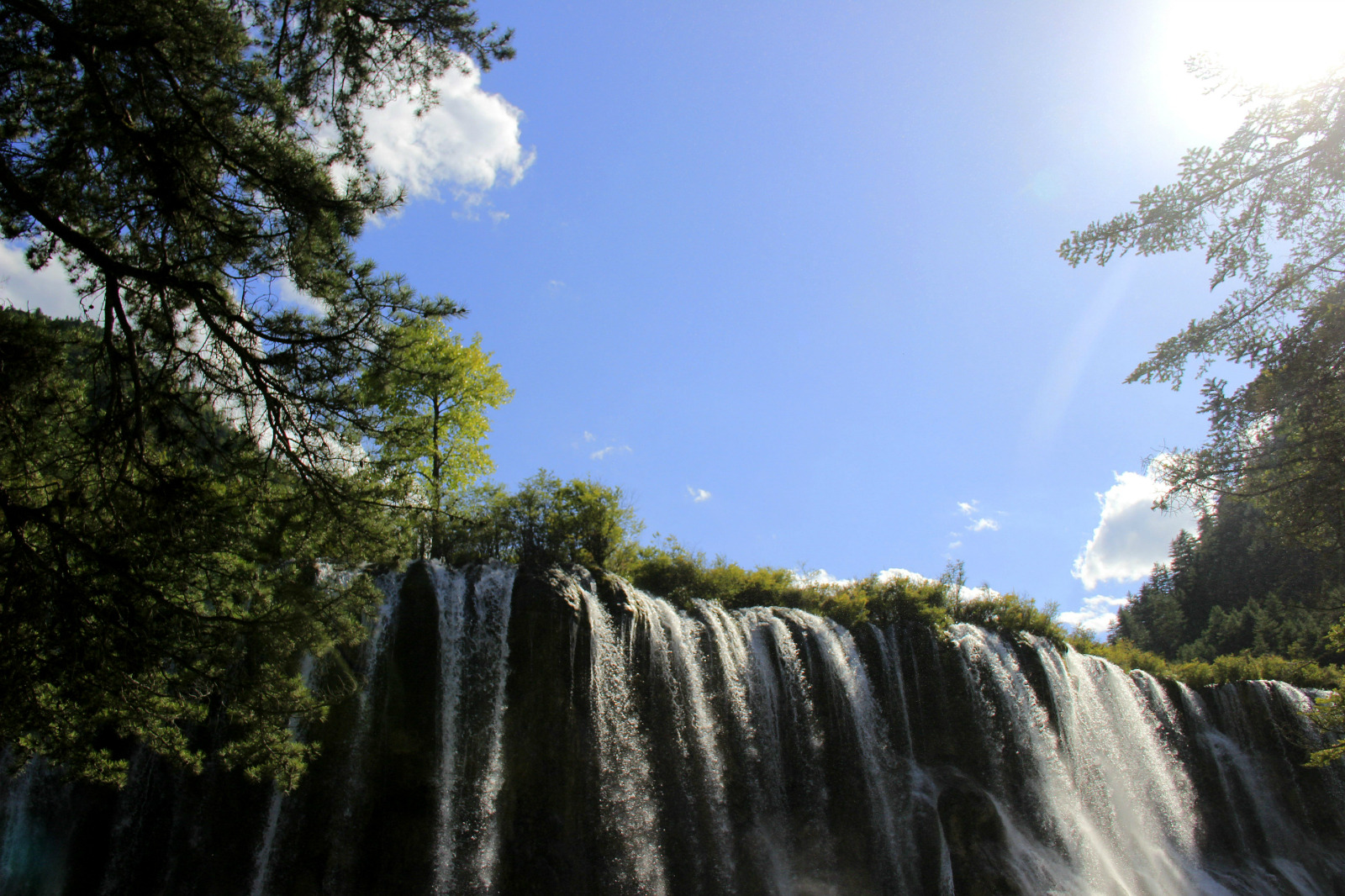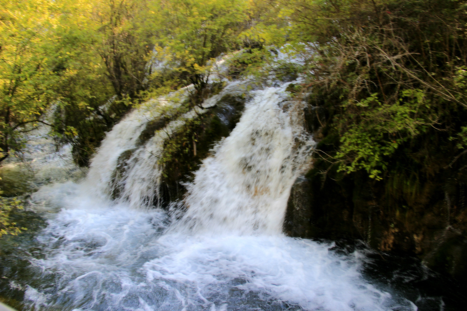 【景点介绍】诺日朗瀑布位于中国四川省九寨沟,海拔2365米,瀑宽270米,高24.5米,是中国大型钙化瀑布之一,也是中国最宽的瀑布。藏语中诺日朗是伟岸高大的意思,因此诺日朗瀑布意思就是雄伟壮观的瀑布。【景点位置】诺日朗瀑布,顾名思义,靠近诺日朗中心站,就在站点往下经过公路隧道不到1000米就可以到达瀑布所在观景台。往下走就是犀牛海以及老虎海,但是整个路程较远。【游玩时间】虽然来说瀑布较大,是中国最宽的瀑布,但是没有办法上到瀑布上面,只能在下面的景观台上一览全景,所以游玩时间花不了多久,大概游玩时间是在20分钟左右。【景点详情】诺日朗瀑布位于九寨沟“Y”字的正中央,周边有服务中心,应该是九寨沟内服务设施最齐全的地方了,如果没有带什么干粮的话,可以选择到不远处的中心站进餐,在中心站里面有自助餐以及套餐提供,套餐是30元一份,自助餐价位不定,60~300左右,个人感觉还是套餐比较划算,据说自助餐里面没有什么很多吃的,味道也只能算一般。当然最多的游客都是自己带着干粮来到九寨沟的。在诺日朗瀑布的观景台上面吃着干粮看着瀑布也是很不错的选择,但是要注意不要随地乱丢垃圾。诺日朗瀑布的侧面,望着从高台上倾泻而下的水流,如银河飞泻,声震山谷。清冽的湖水自上方各个海子而来,漫过老树枯根,流经荒漠草原,汇入处子一般恬静的镜海,然后从灌木丛中悄然滑出,至断层一头扎下,形成蔚然大观的诺日朗瀑布,水落石上,阳光透照,飞花溅玉中折射出彩虹的颜色。【推荐】关于观景的位置,也就只有景观台一个地方是全揽整个诺日朗瀑布,所以并没有很多选择。但是可以从时间上来避开人群,尽早的进入景区,第一站就是瀑布,因为大多数人都是自上而下的游览顺序,这样的话,在最开始的这段时间里面瀑布观景台上不会有很多人,就可以一个人好好的欣赏这一壮丽的景观了,最好是在日出的时候赶到这里,偶尔还会有彩虹出现。如果选择在诺日朗瀑布下车了之后,就可以一路逆流,因为一般的导游都会推荐从箭竹海游玩至诺日朗瀑布,这样的话,镜湖也会显得格外幽静。