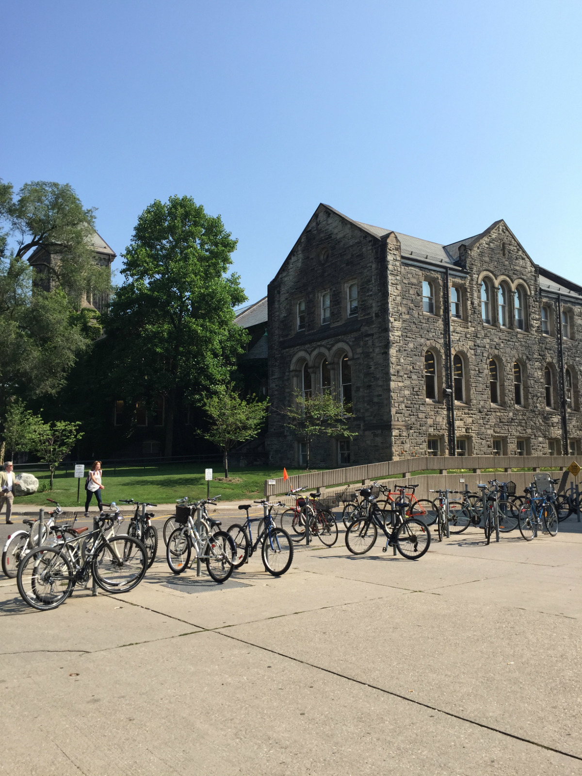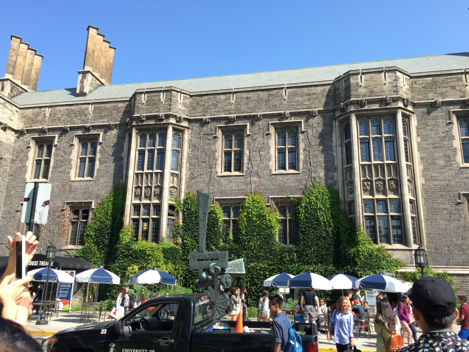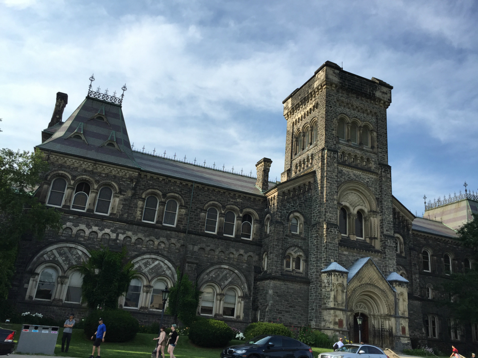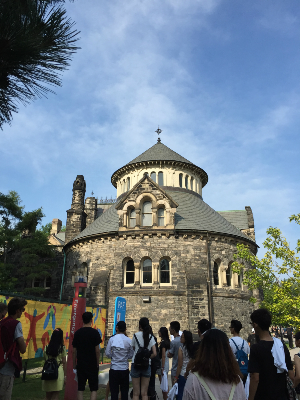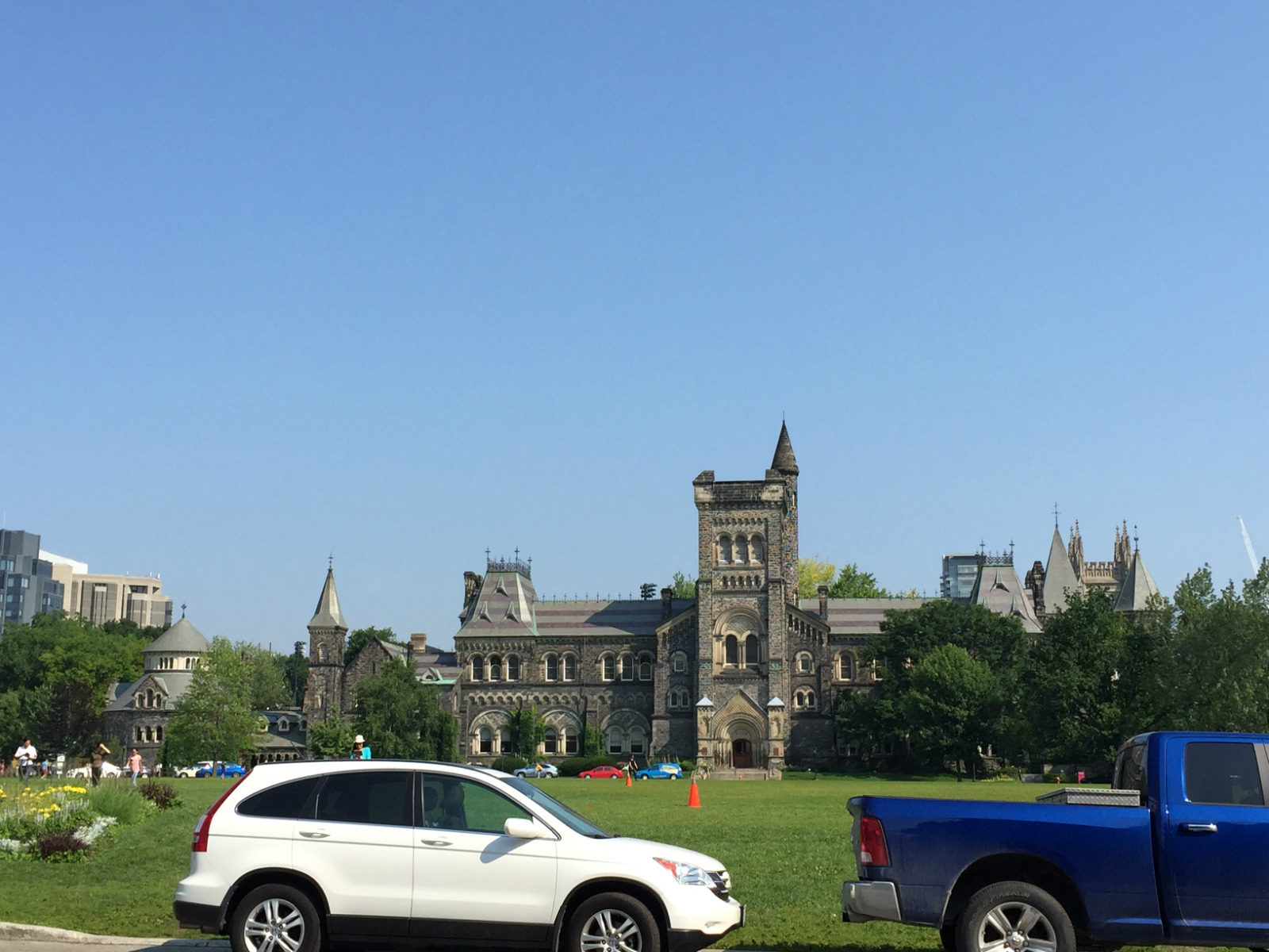 这又是一个世界顶级学府,多伦多大学(University of Toronto) 简称U of T,是加拿大一所超级著名的公立大学,就位于安大略省的多伦多市市中心的女王公园旁边,在女王公园附近还有安大略省政府和安大略省议会,到这里的话只需要乘坐地铁到地铁Queens Park站然后就可以到了。也可以选择乘坐公交。由于加拿大曾经被英国殖民统治并且现在还是英联邦的成员,所以学校里的建筑都完全是英式的古典建筑。多伦多大学其实有三个校区,多伦多大学是由主校区圣乔治校区(St.George Campus, UTSG)和密西沙加校区(Mississauga Campus, UTM)以及士嘉宝校区(Scarborough Campus, UTSC)两个辅助校区构成,不过一般大家游玩的都是位于女王公园的圣乔治校区。很喜欢学校里美丽的环境,特别是学校里大块的草坪让我感觉心里很舒适。学校里的建筑都基本是英式的哥特式建筑,看起来特别有历史韵味同时也饱含着艺术感。多伦多大学里哥特式的建筑让人觉得这里就像博物馆一样高大霸气。大片草坪配上古典的哥特式建筑很美,说实话这块草坪真的太大了点,朋友说秋天来的时候多伦多大学会更加美,不过这一次是夏天来,下一次一定要秋天到这里来再看一次美景。